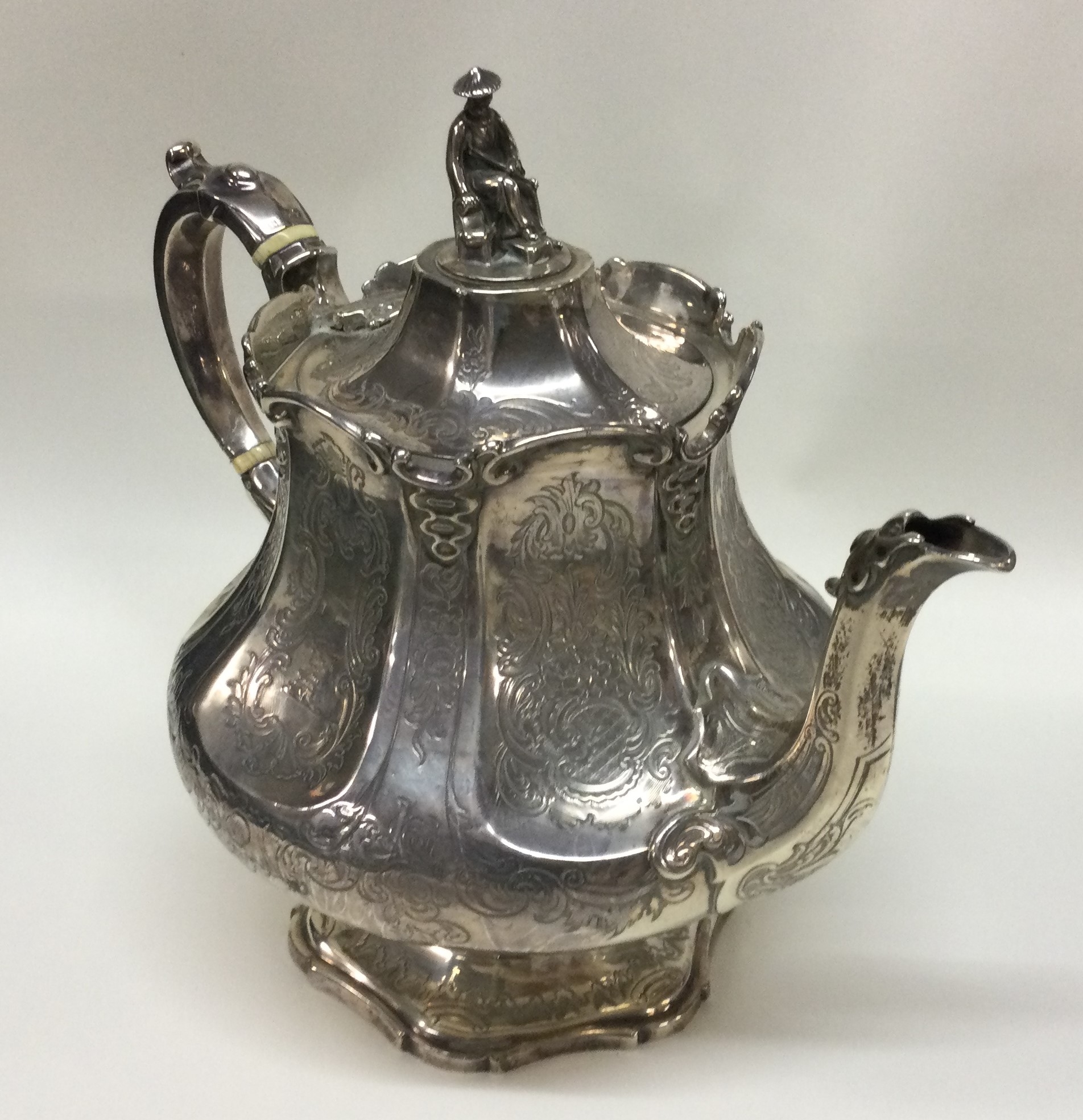 A good Chinoiserie engraved silver teapot. London 1845. By George John Richards. Approx. 680 grams. Est. £400 - £600.