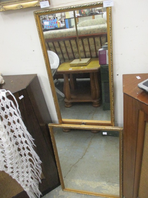 2 WALL MIRRORS ONE LONG JOHN THE OTHER SMALL OBLONG BOTH IN MATCHING GOLD COLOURED FRAMES