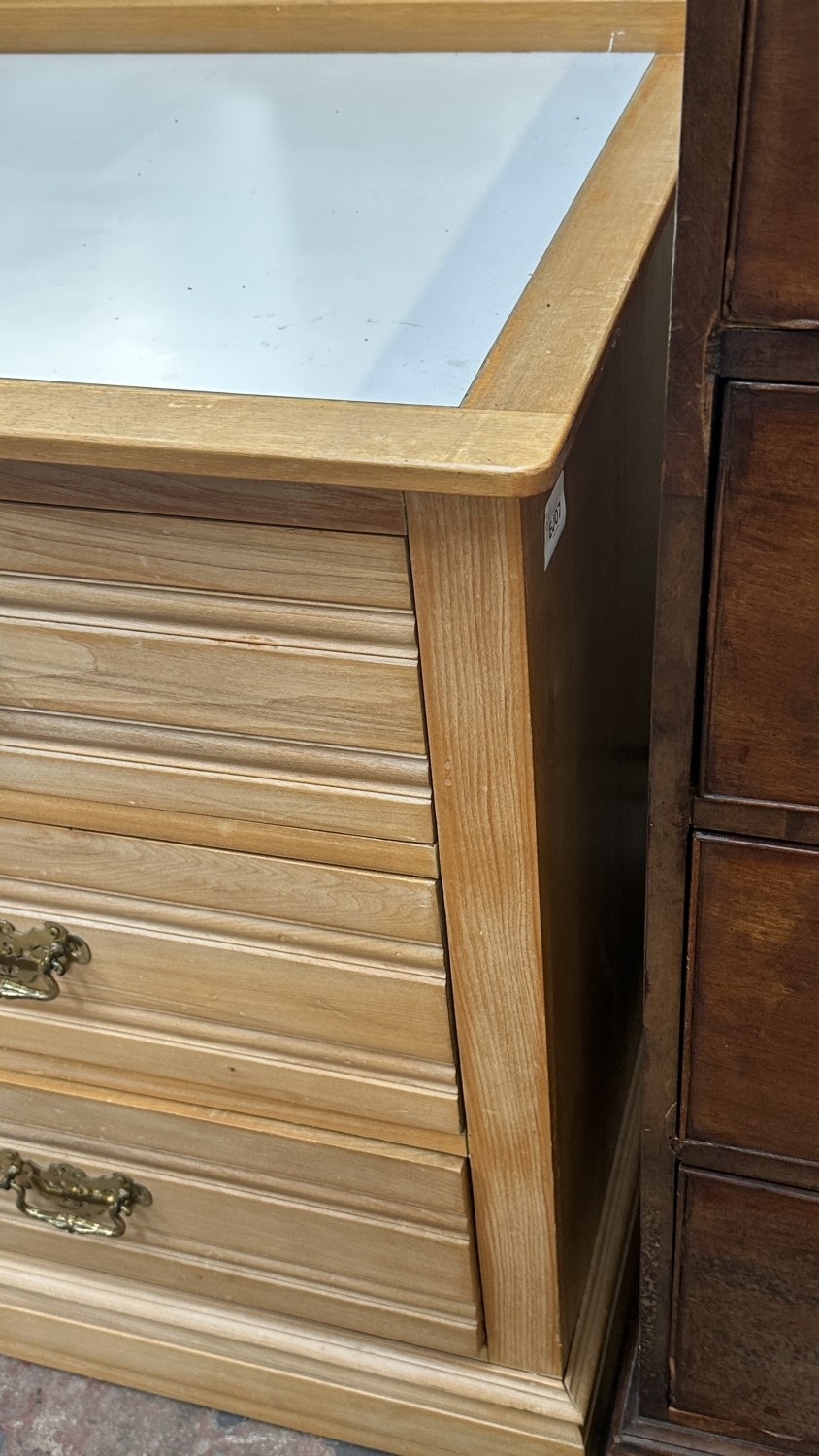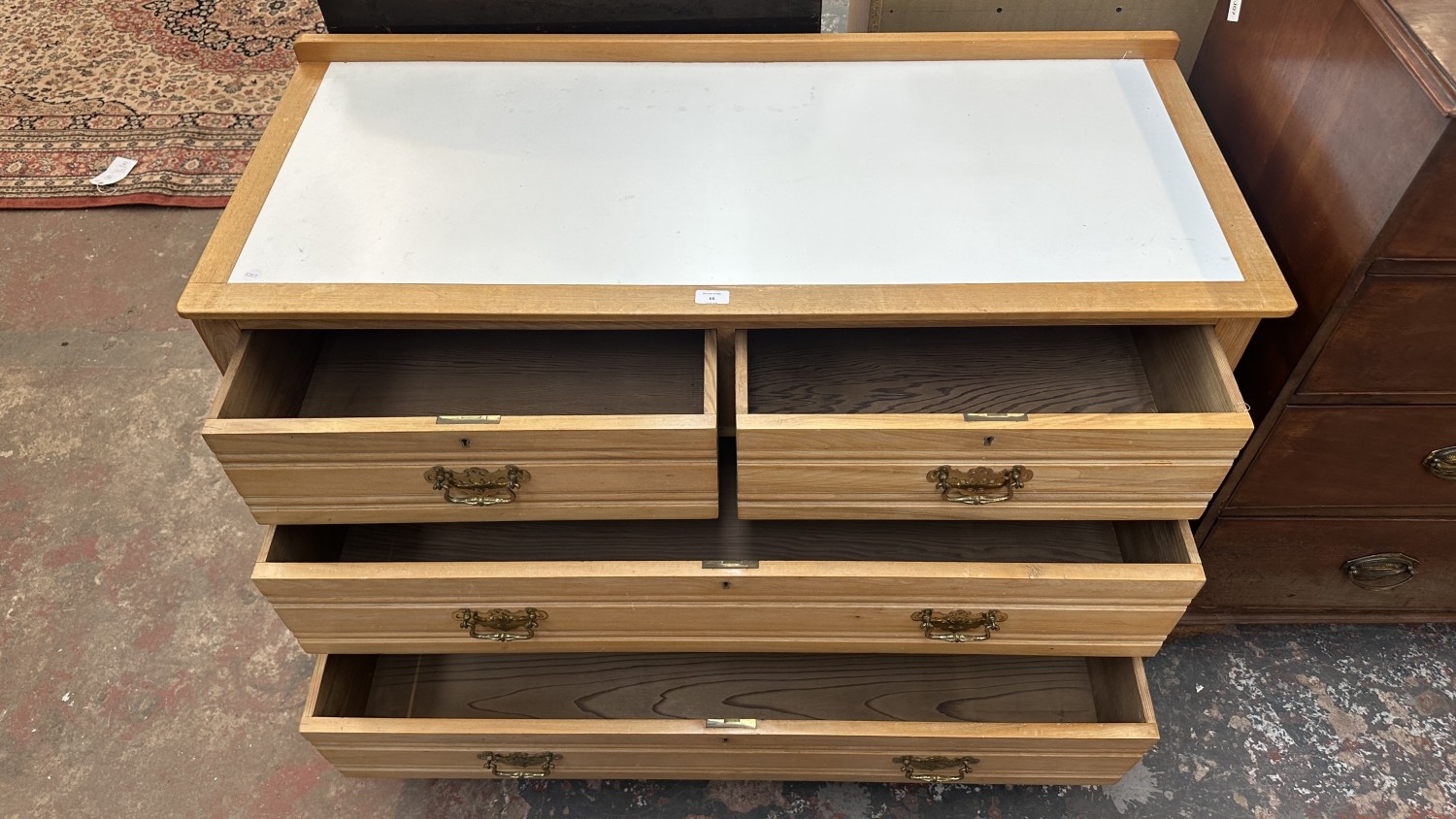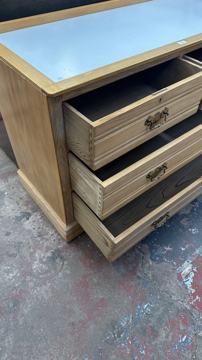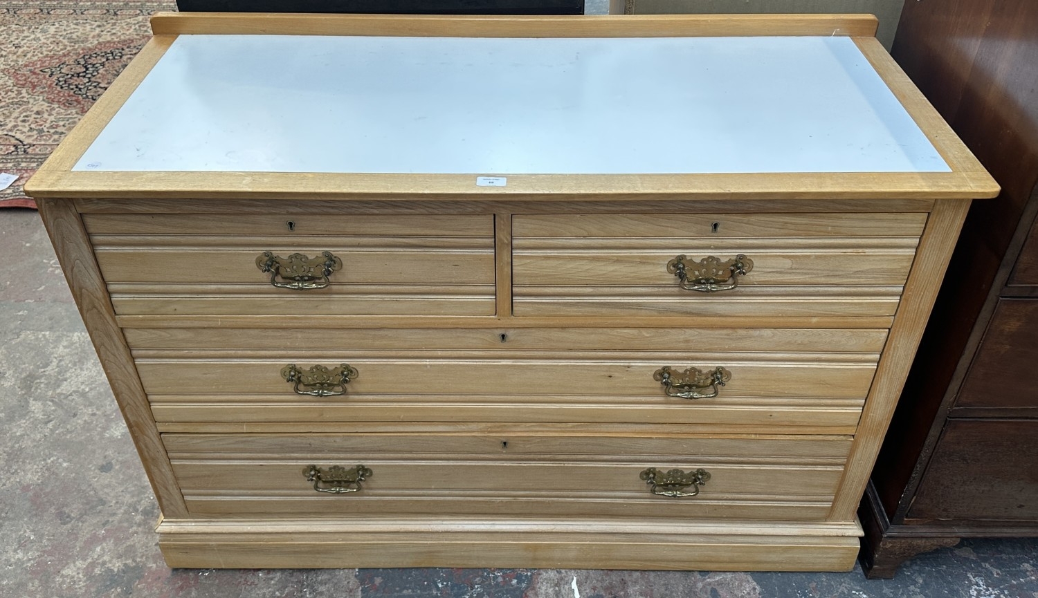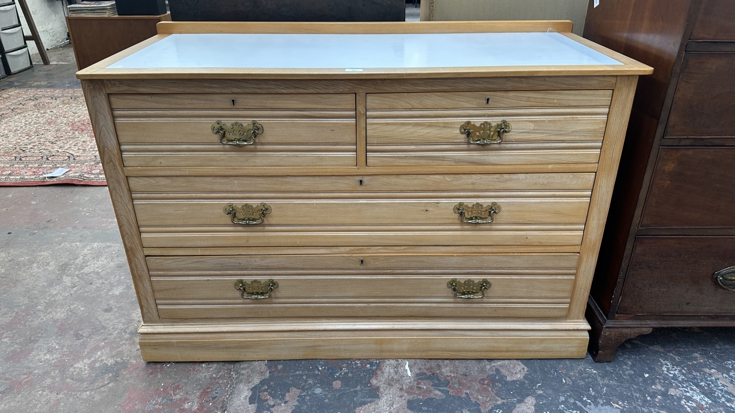 An Edwardian satinwood chest of drawers with later white laminate and beech top - approx. 87cm high x 124cm wide x 52cm deep