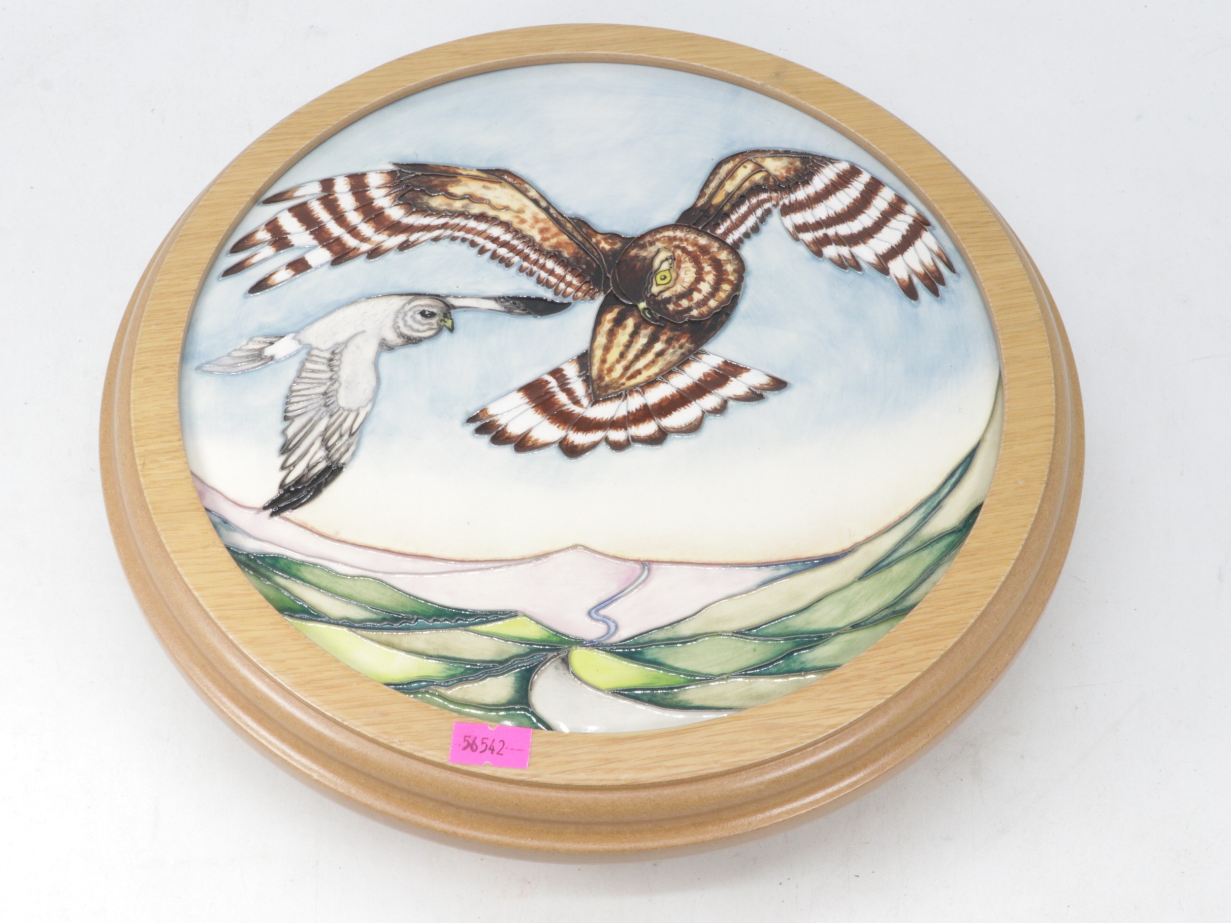 Moorcroft "Sky Dancer Hen Harrier" wall plaque, RSPB, Limited Edition 2015 Discover Nature Collection (overall approx. diameter 30.5cm)