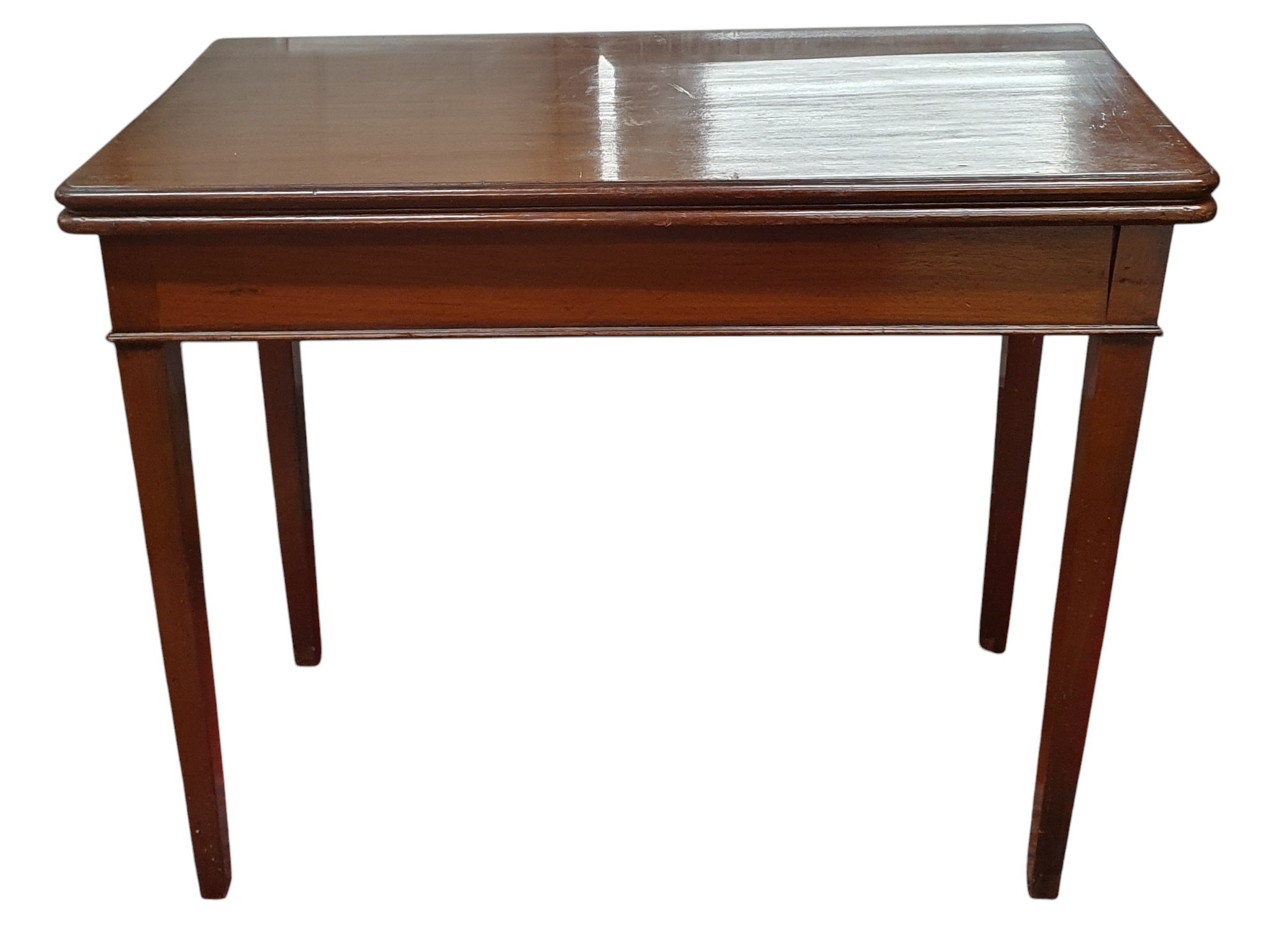 Of superb quality A Georgian Mahogany foldover Tea Table with square tapered supports. 90 x 44 x 76 cm approx.
