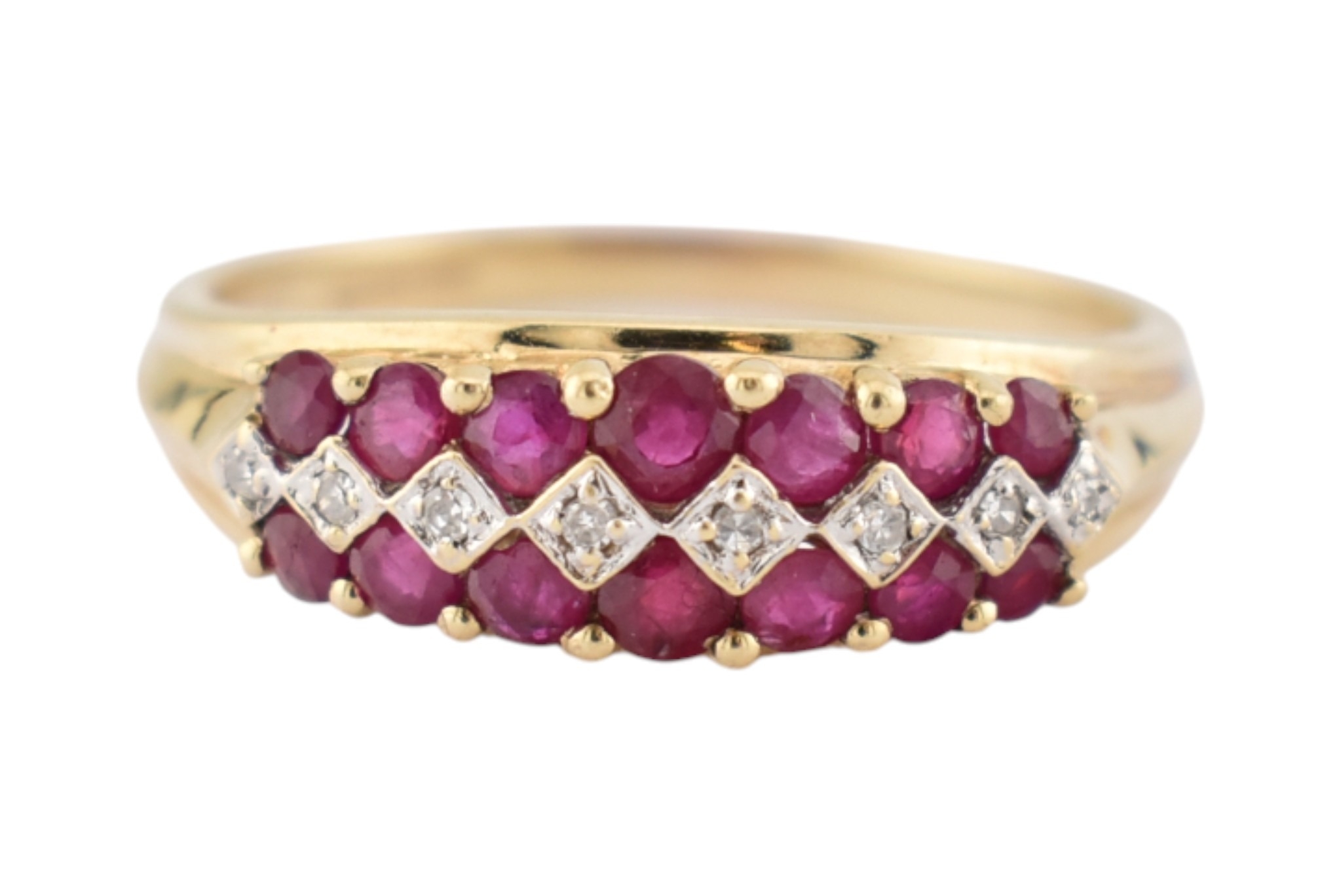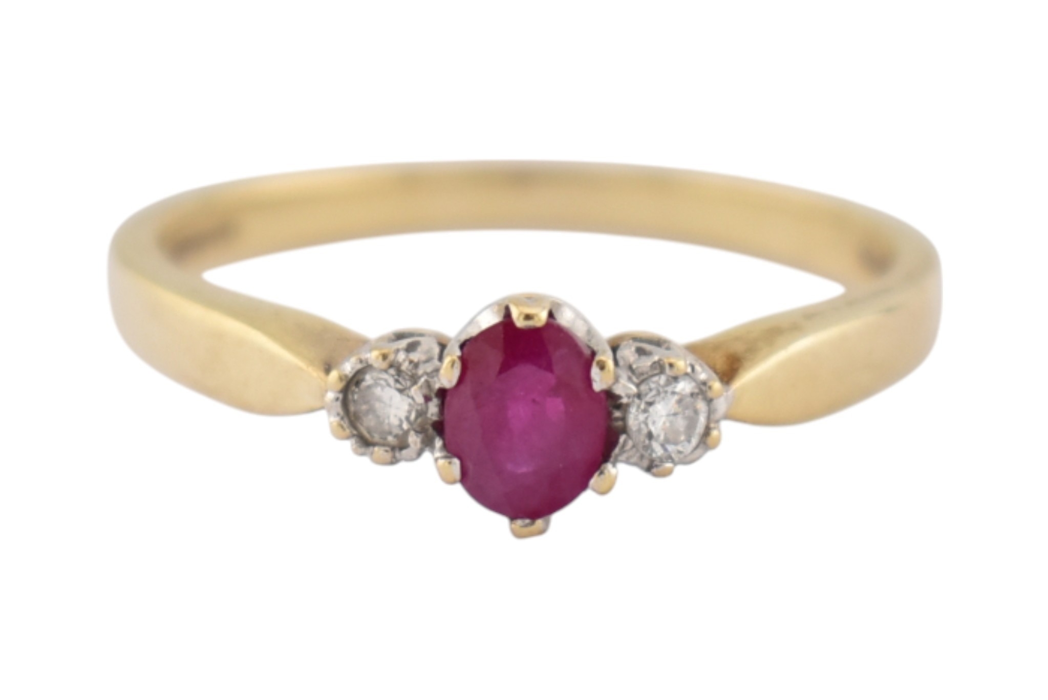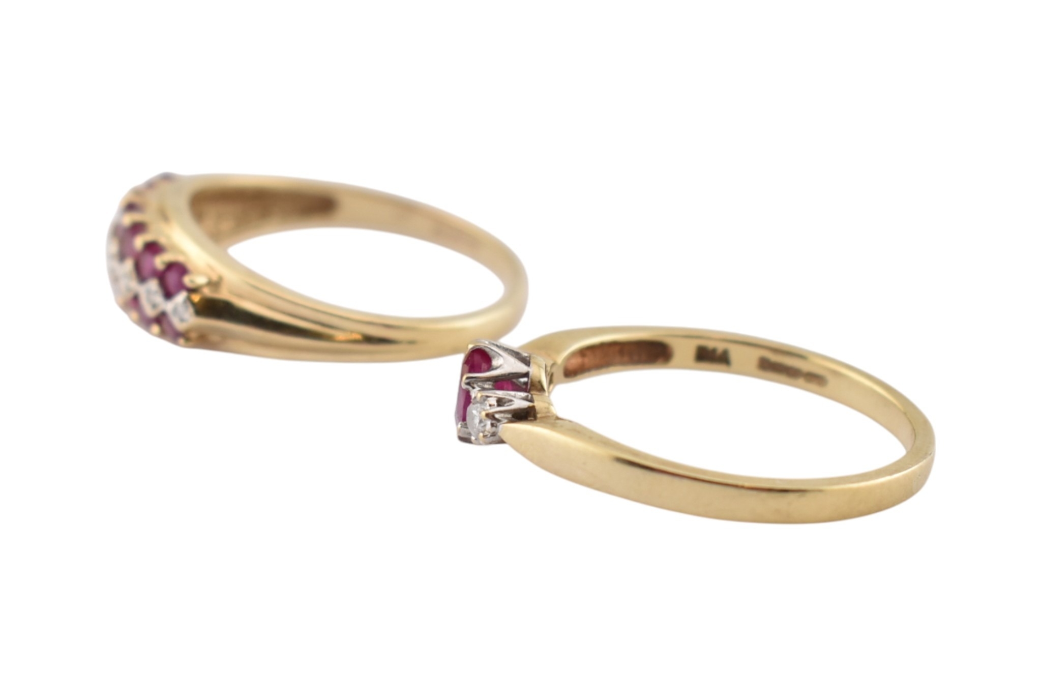 Two hallmarked 9ct gold ruby and diamond rings. Weight 5.6g. Both size T