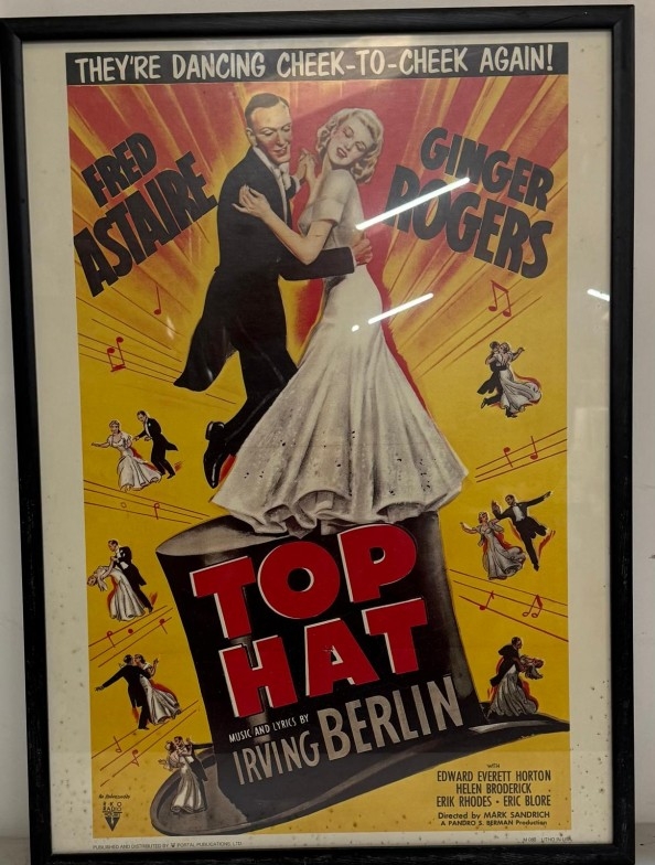 A vintage framed film poster for Top Hat starring Fred Astaire 54cm x 74cm