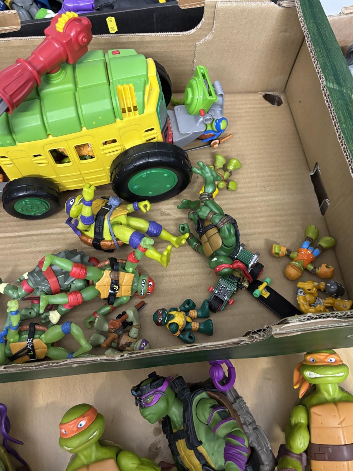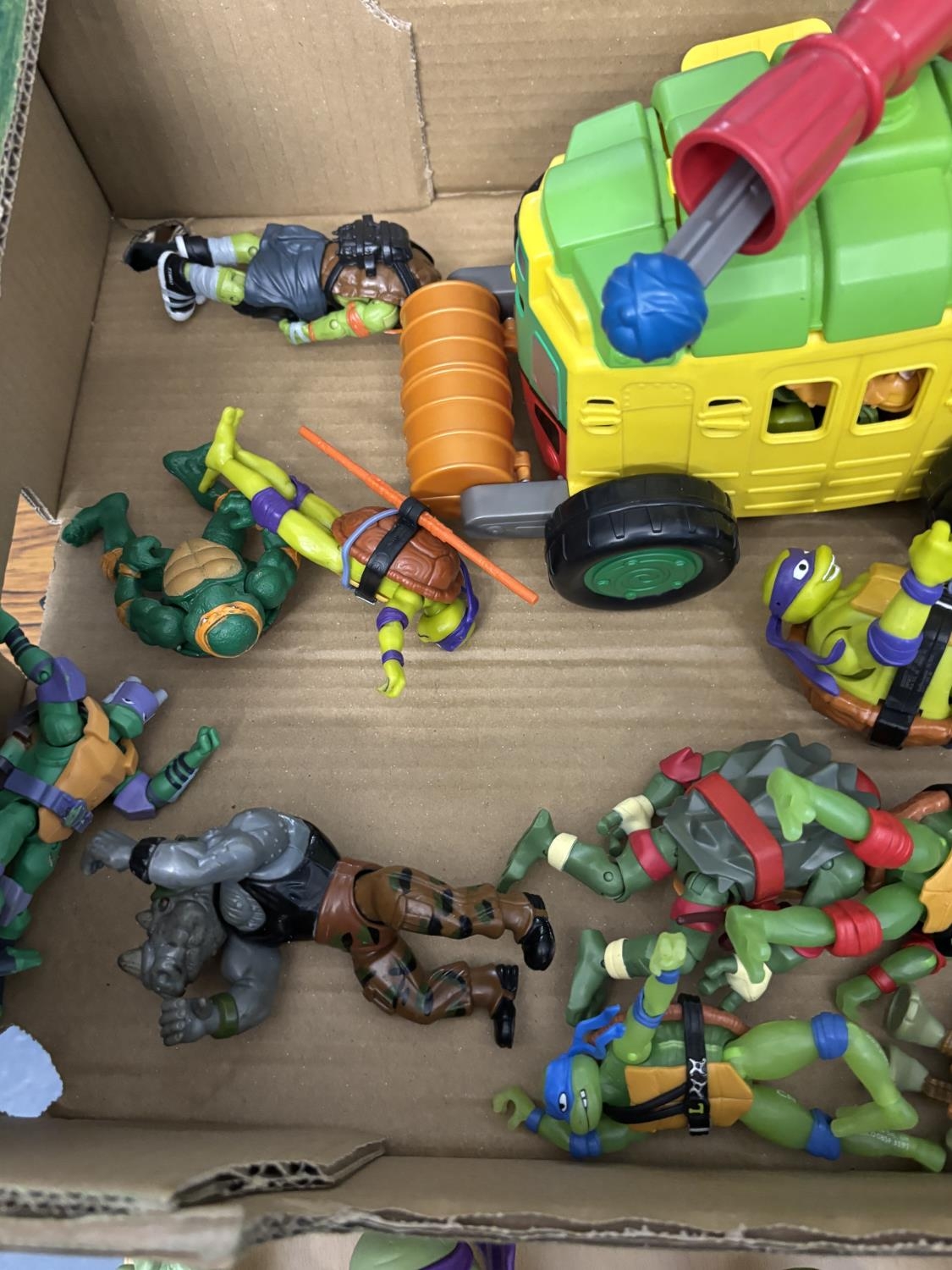 BOX OF TEENAGE MUTANT NINJA TURTLES INCLUDES A VEHICLE, ROCK STEADY & TURTLES PLEASE SEE PICTURES FOR DETAILS