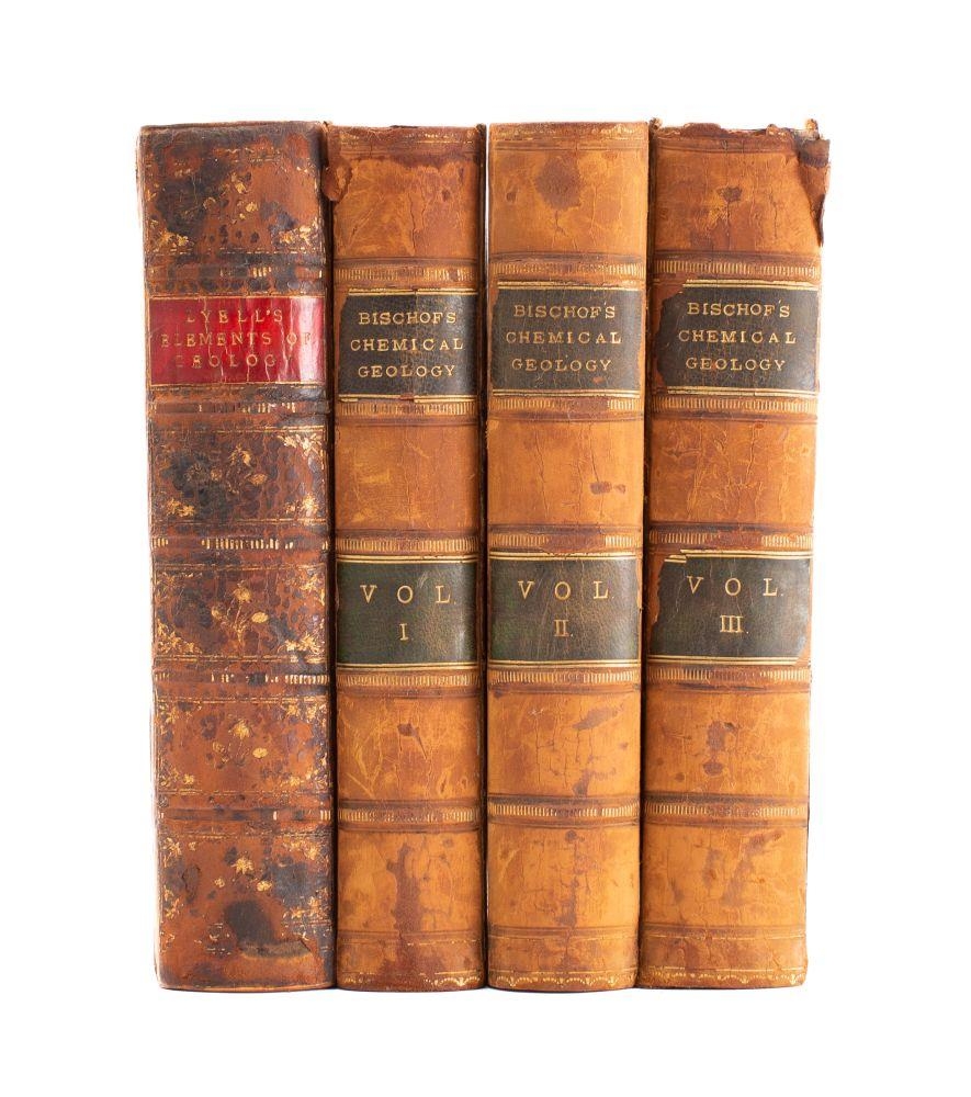 BISCHOF, Gustav - Elements of Chemical and Physical Geology : 3 vols, half calf some wear cracking hinges, 8vo, Cavendish, 1854. With - Lyell, Sir Charles, Elements of Geology, calf rebacked, 8vo, John Murray, sixth, 1865. (4)
