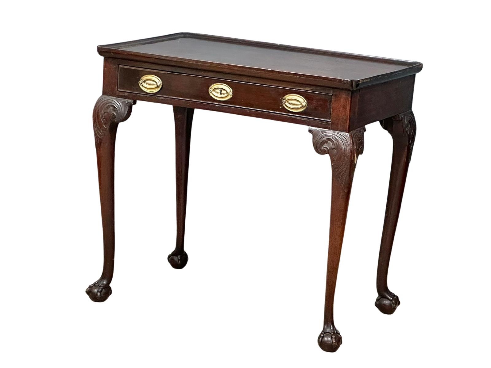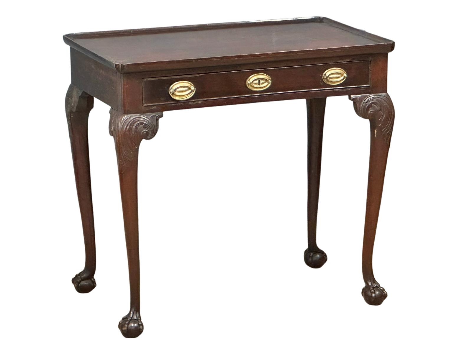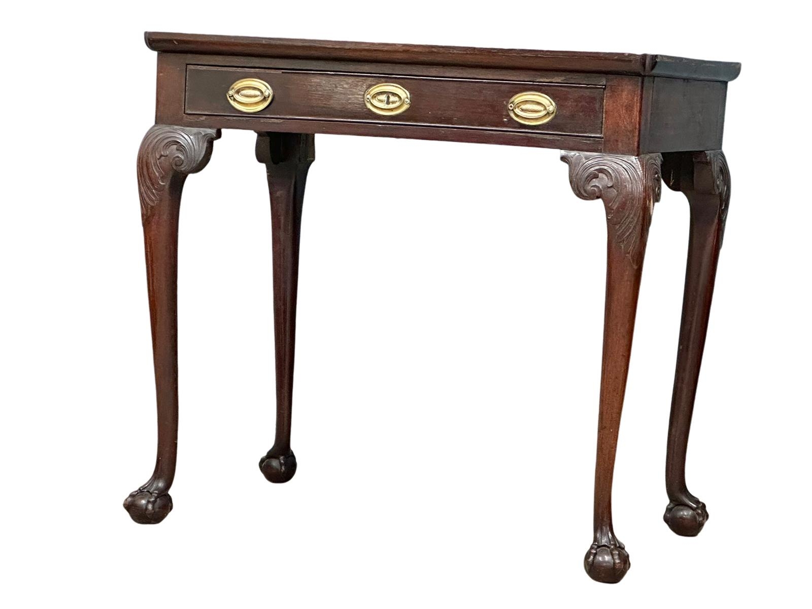 A mid 19th century Irish Chippendale Revival mahogany silver table with drawer on Ball & Claw feet. Circa 1860. 84x5479cm (1)