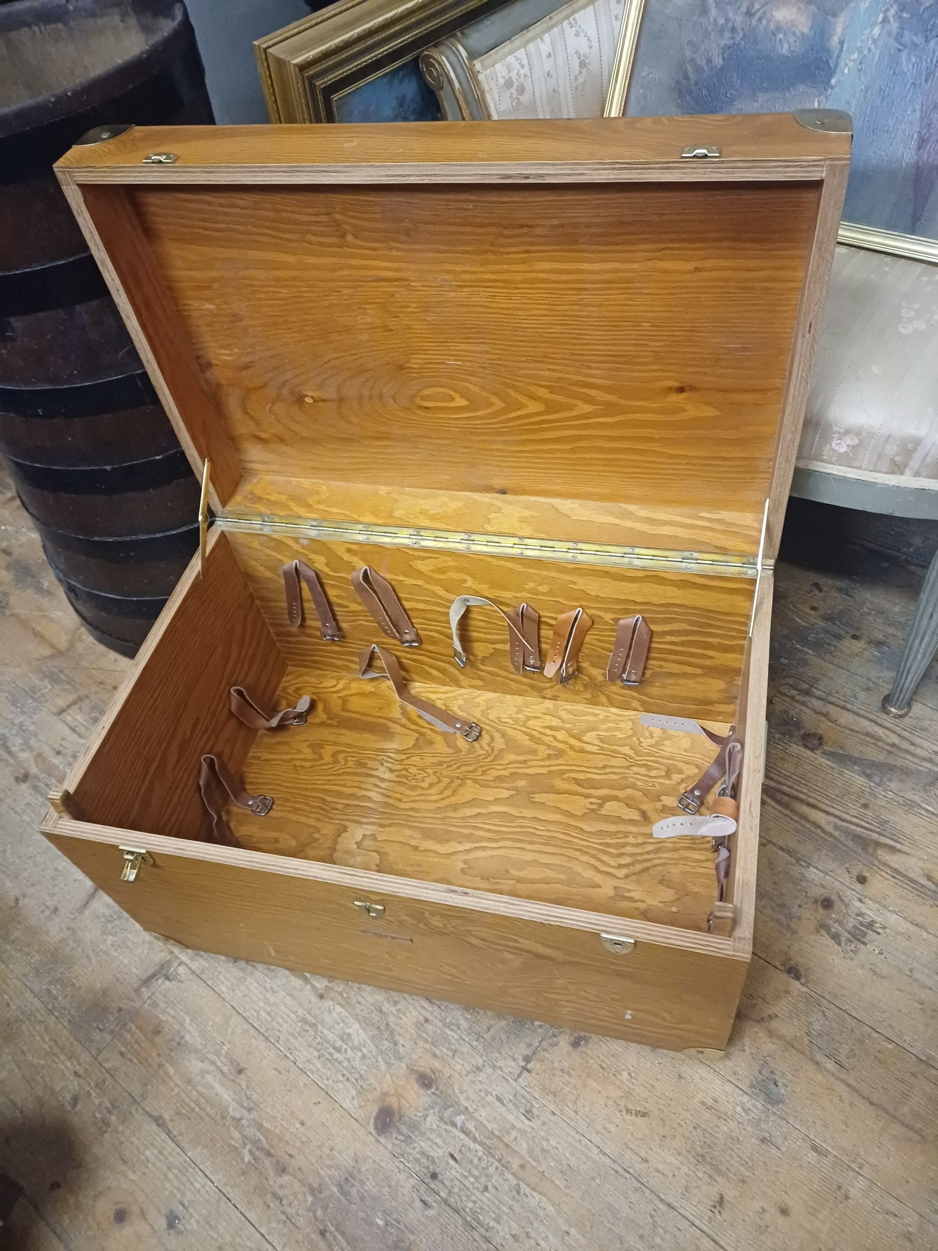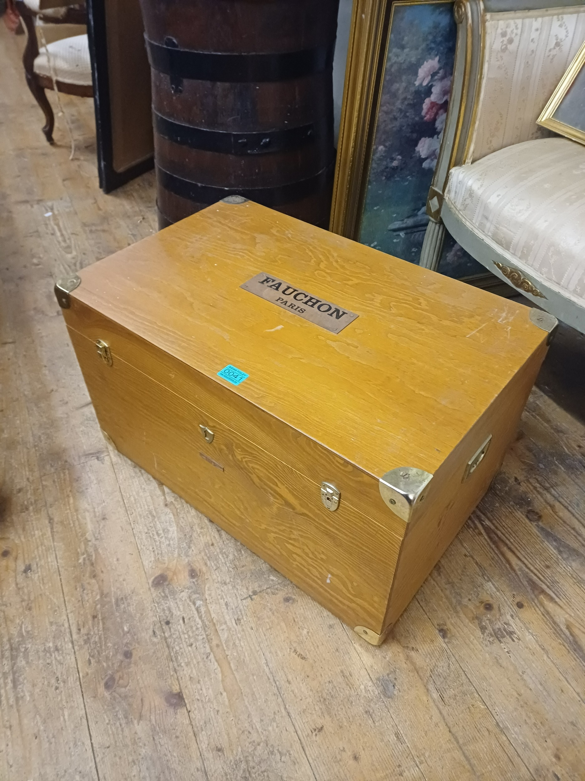 Fauchon of Paris Brass Bound Hardwood Picnic Hamper Box with Fitted Interior (63cm x 40cm x 38cm)