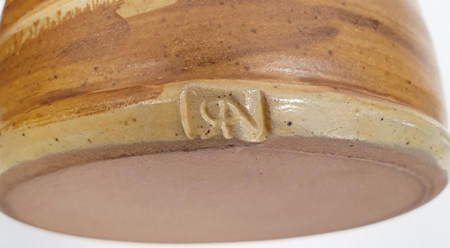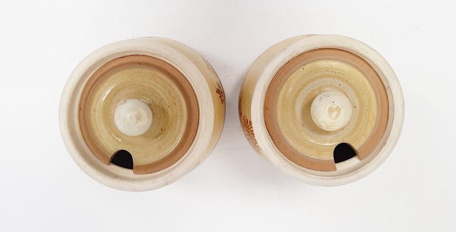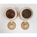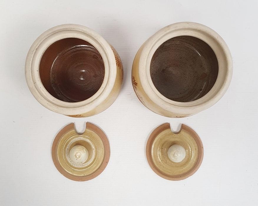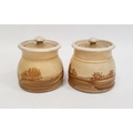 Pair of Rupert Andrews "Mocha" ware lidded preserve jars dec...