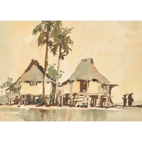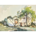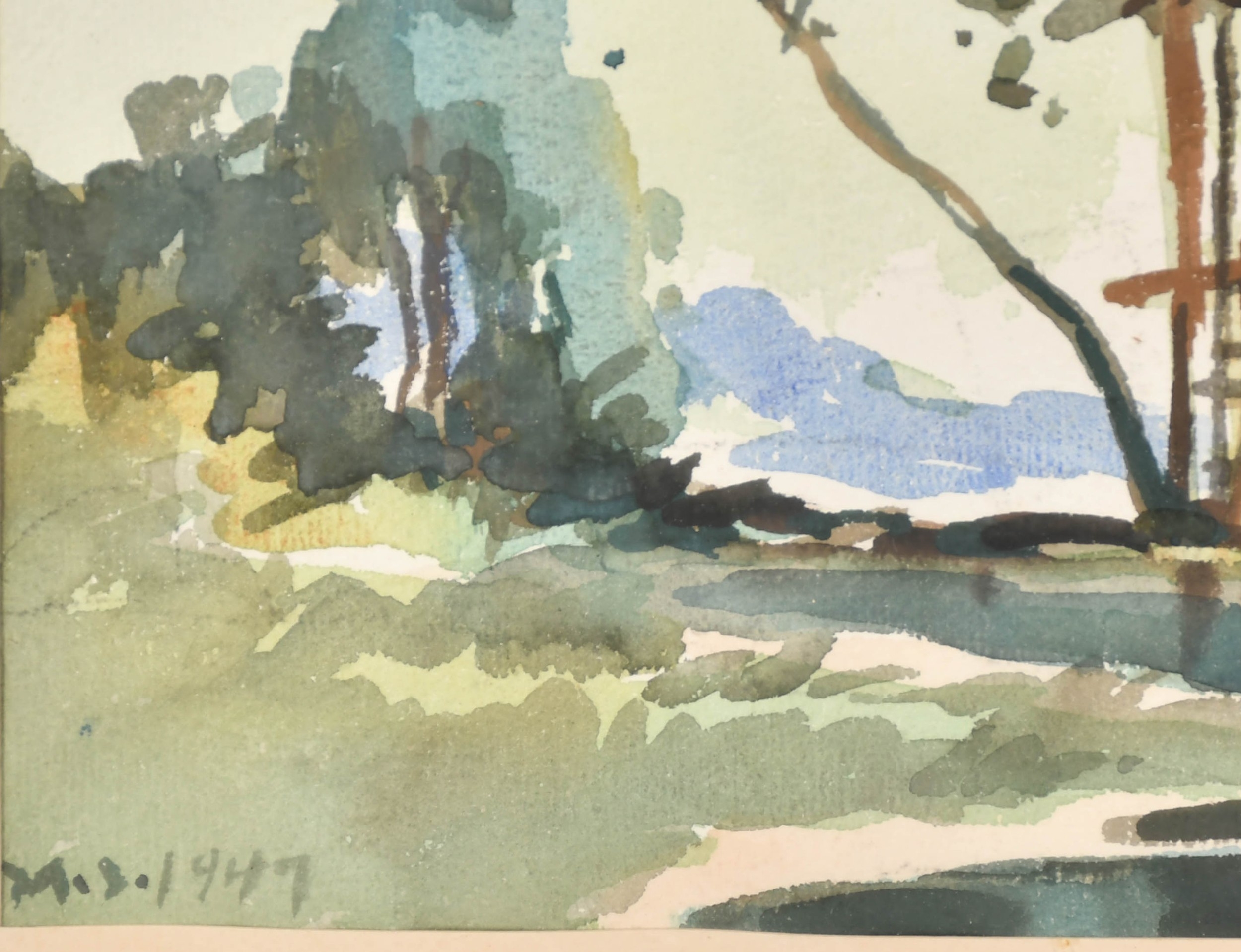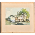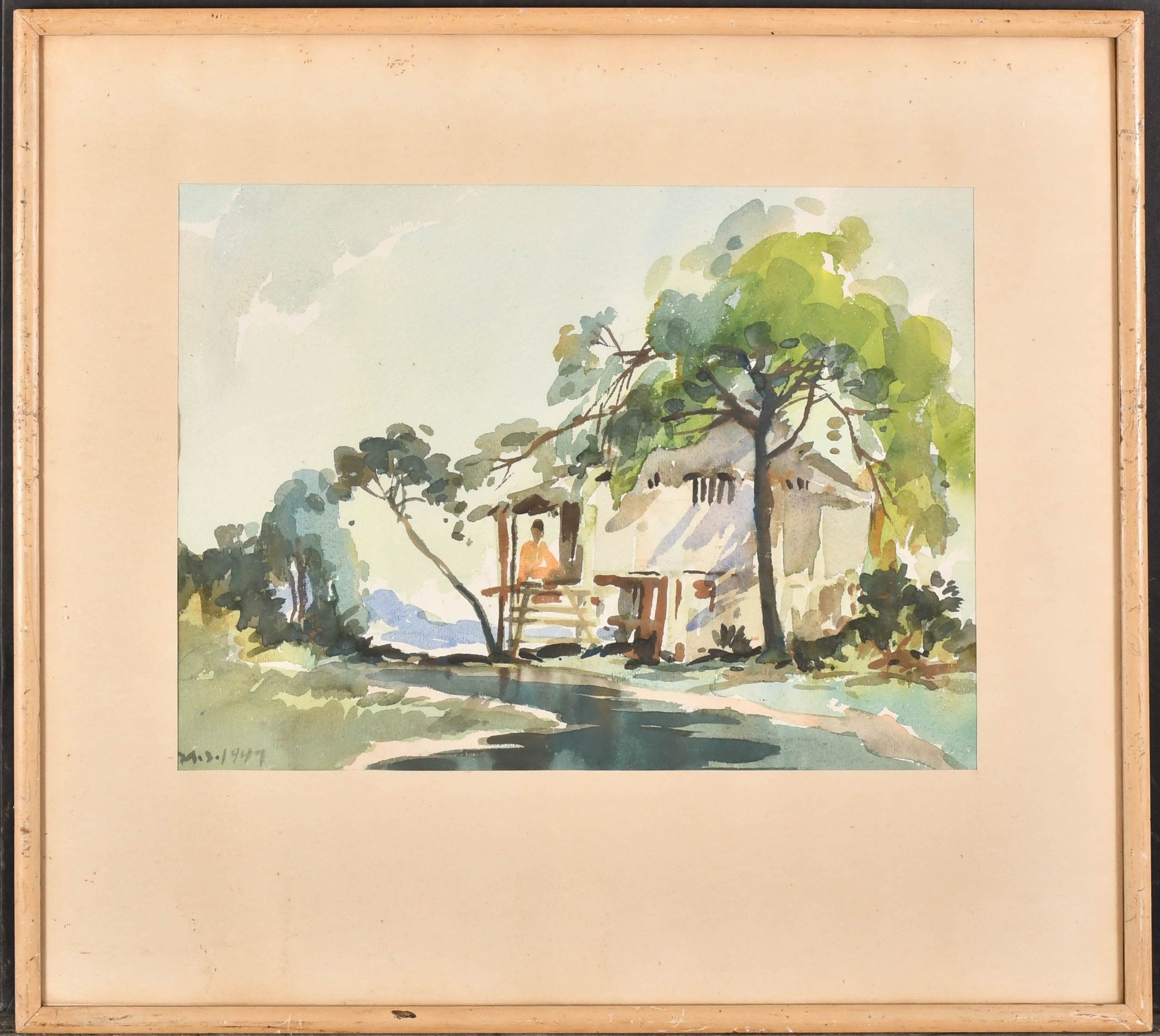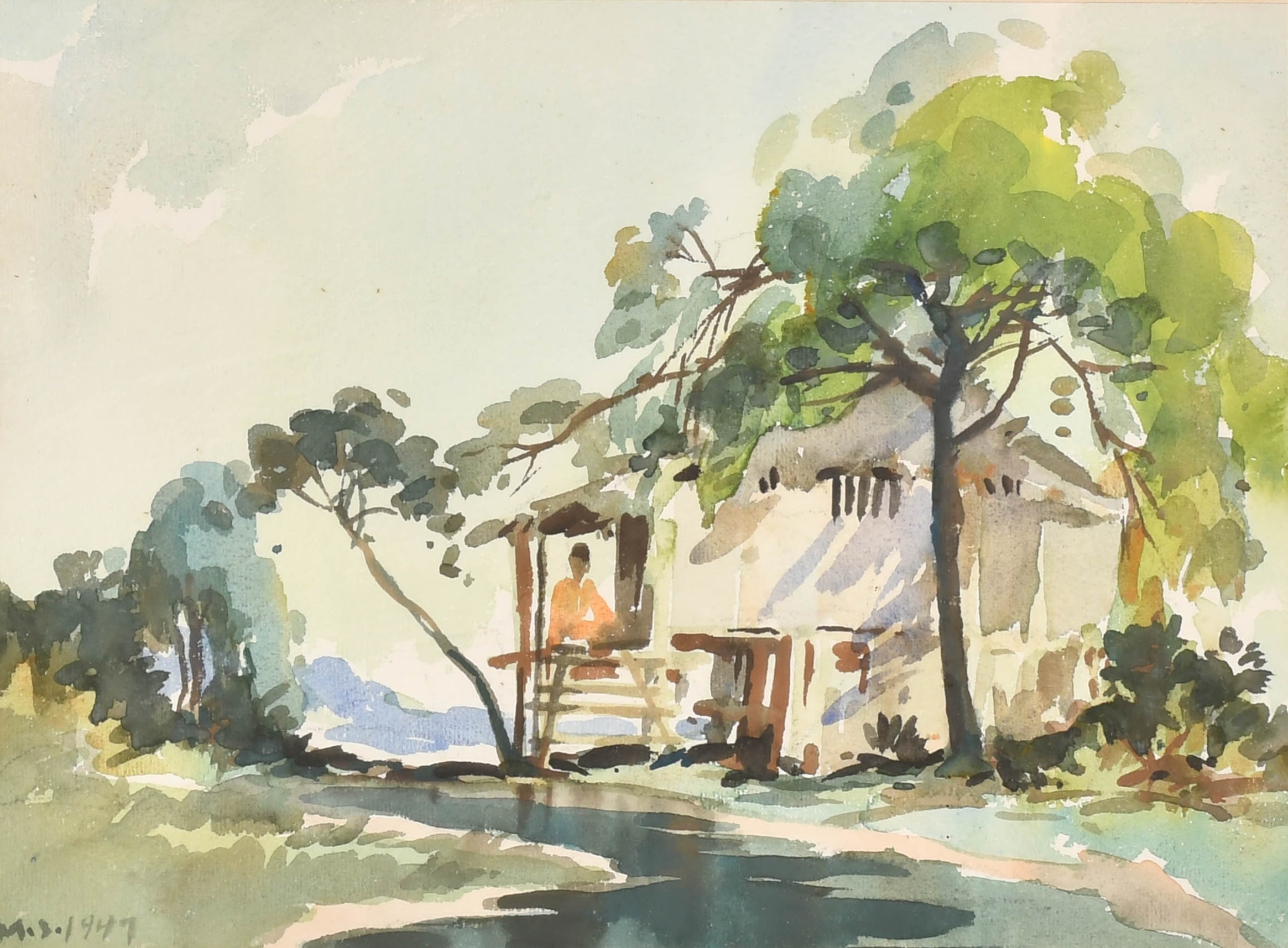 Mun Sen Yong (1896-1962) Malaysian. Figure by a Cottage, Watercolour, Signed with initials and dated 1947, 10.5" x 14.5" (26.7 x 36.8cm)