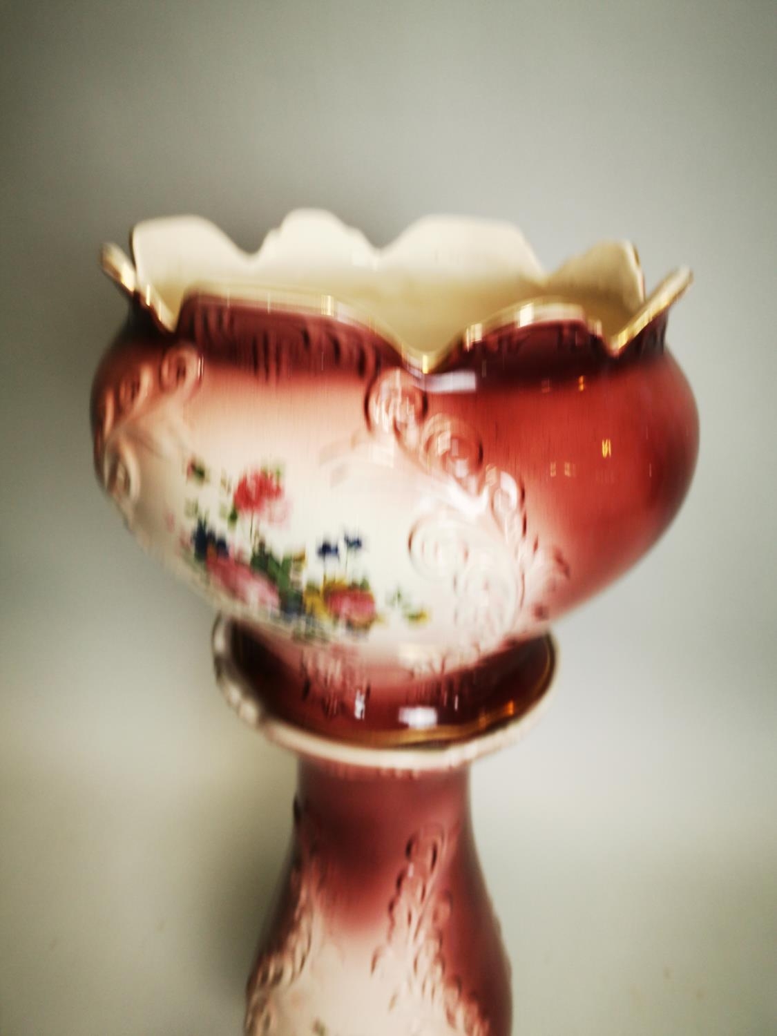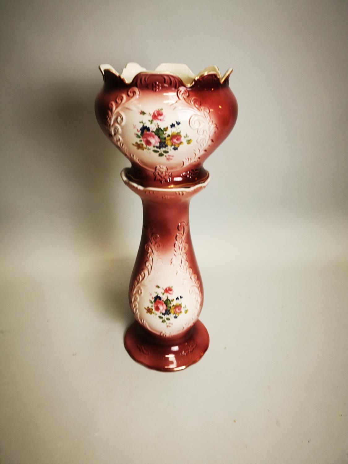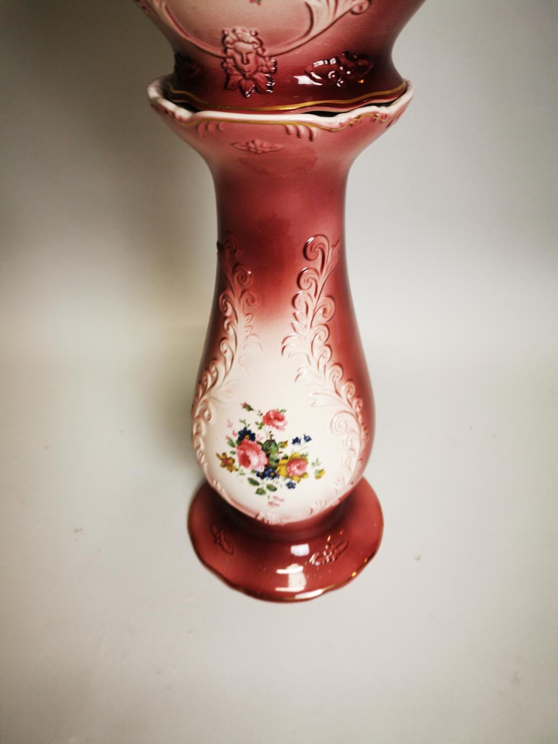 Decorative ceramic jardinière on stand {64 cm H x 28 cm Dia.}.