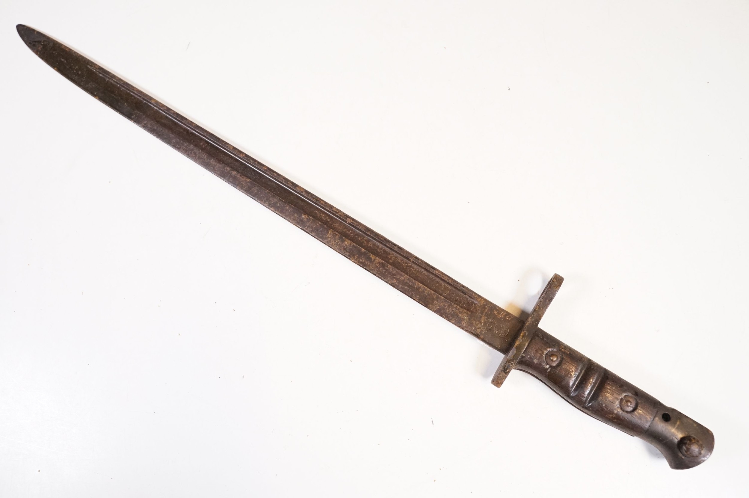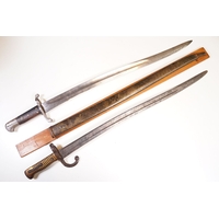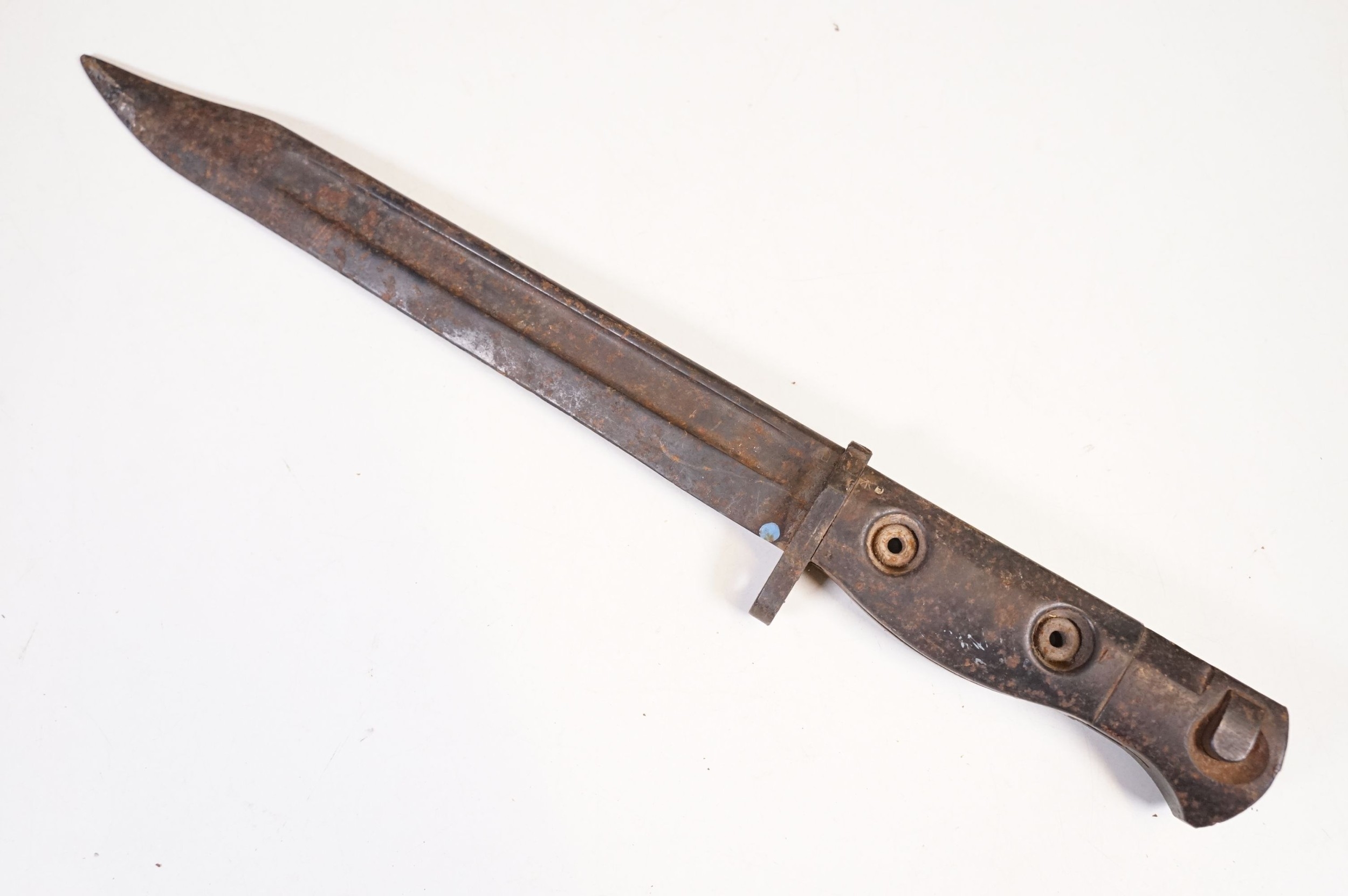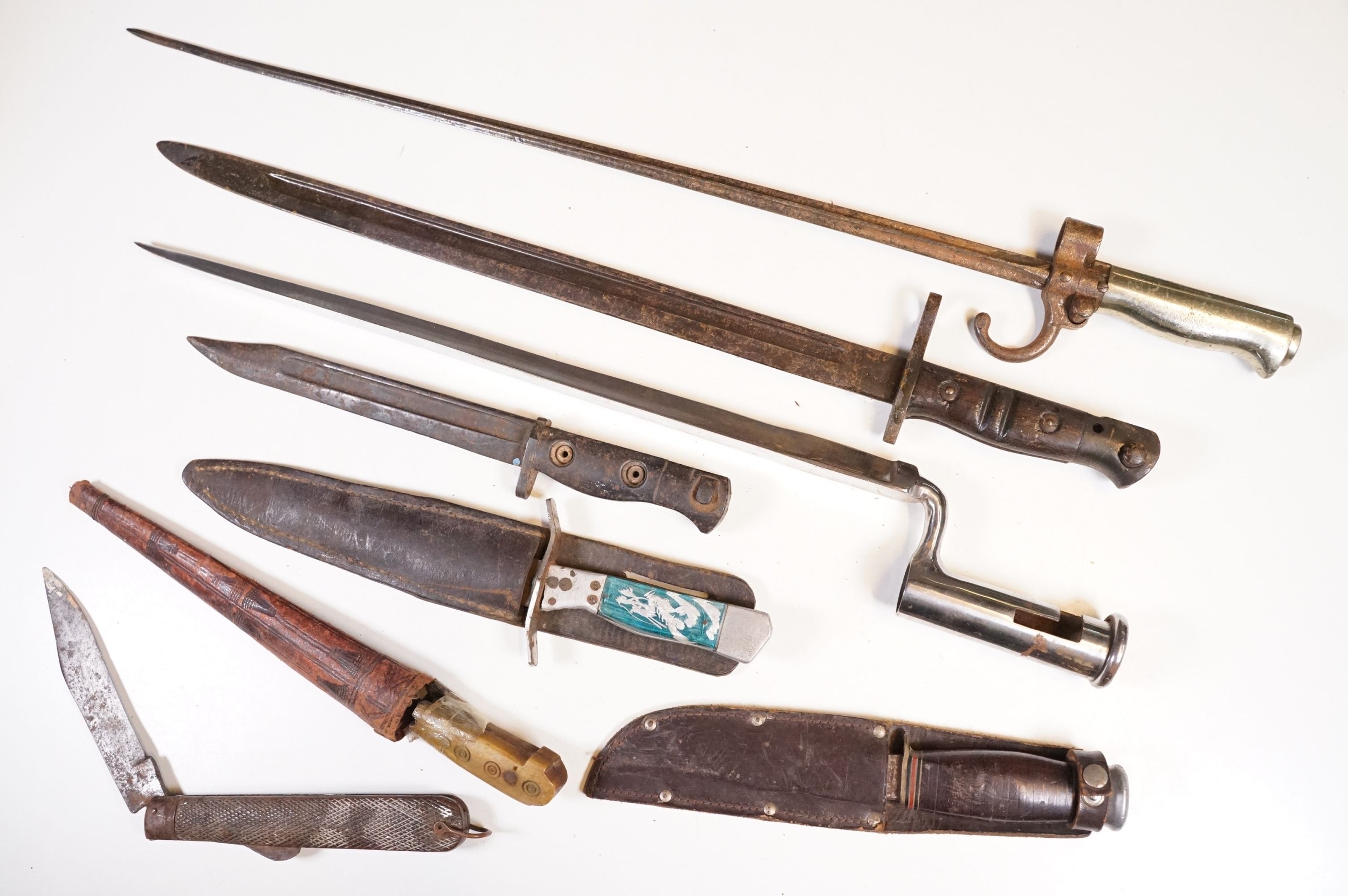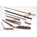 A collection of knives and bayonets to include a French cruciform 1886 Label example.
