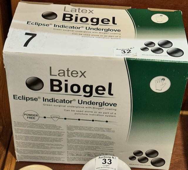 Box Of Approx 50 Pairs Of Size 7 Latex Powder Free Biogel Surgical Undergloves - Expiry 08 2019