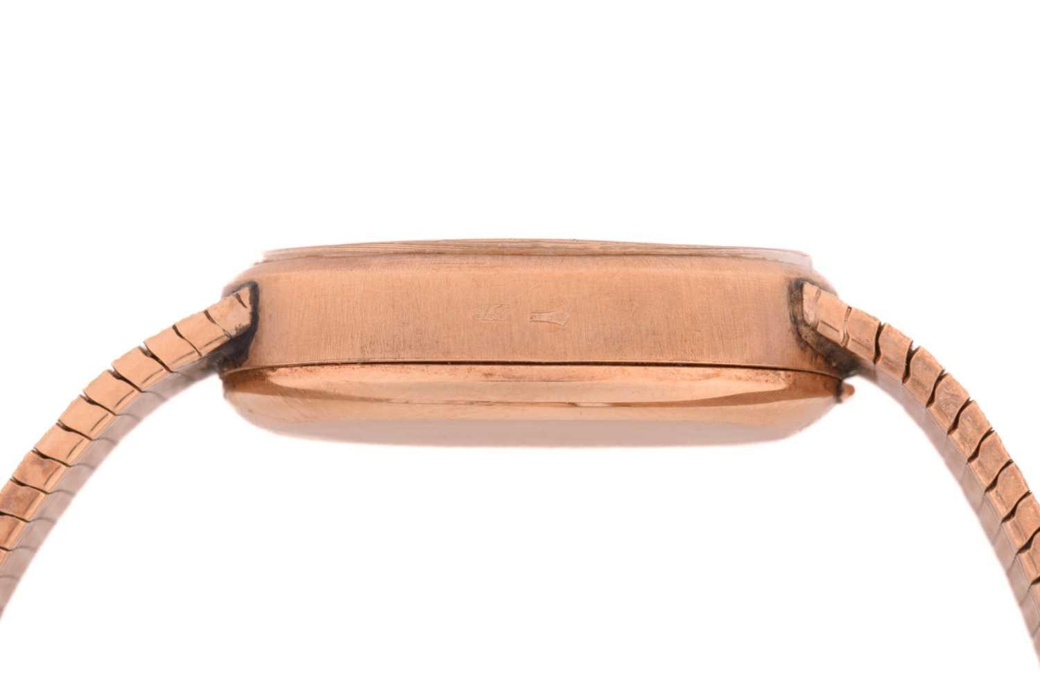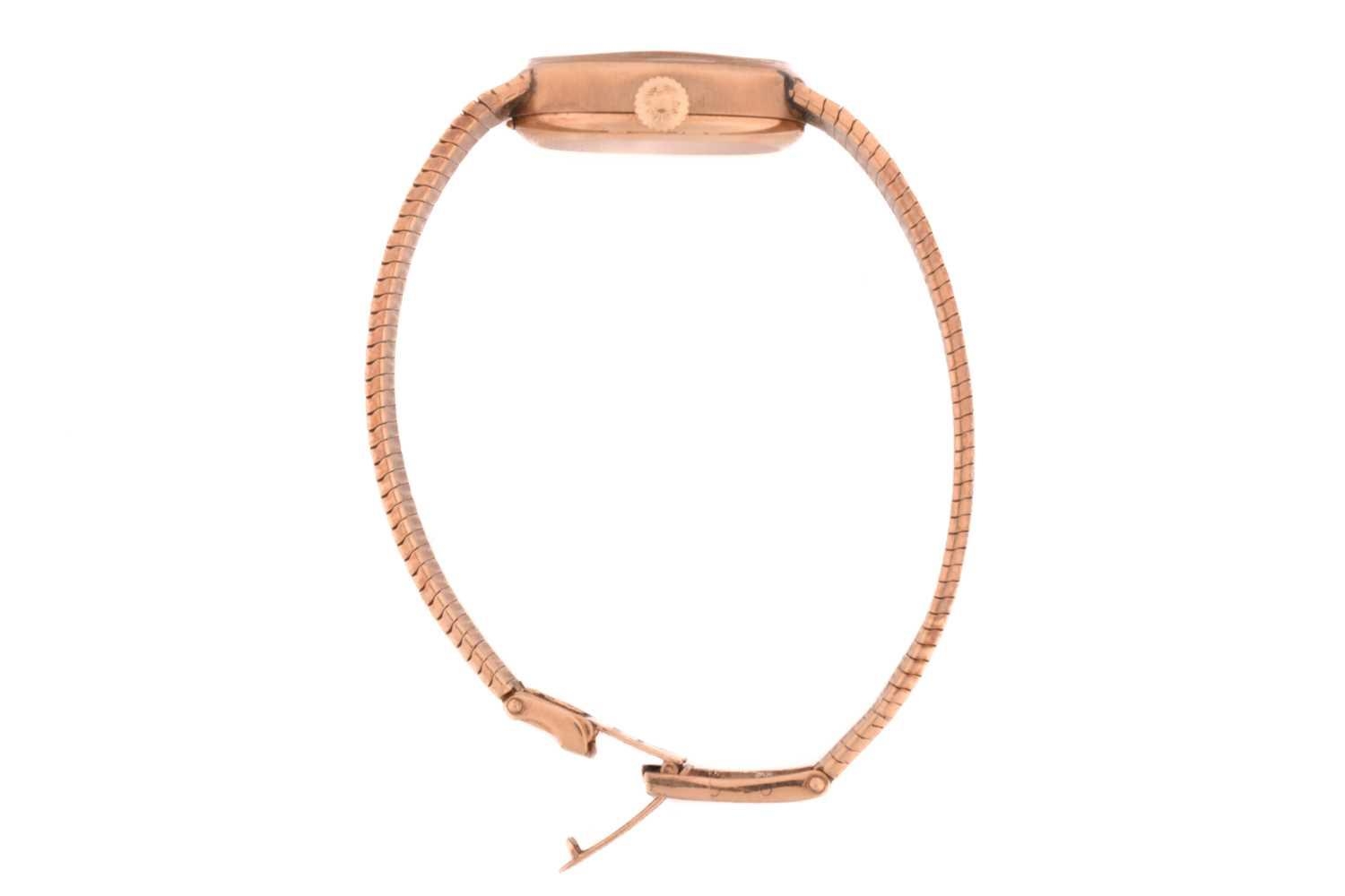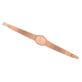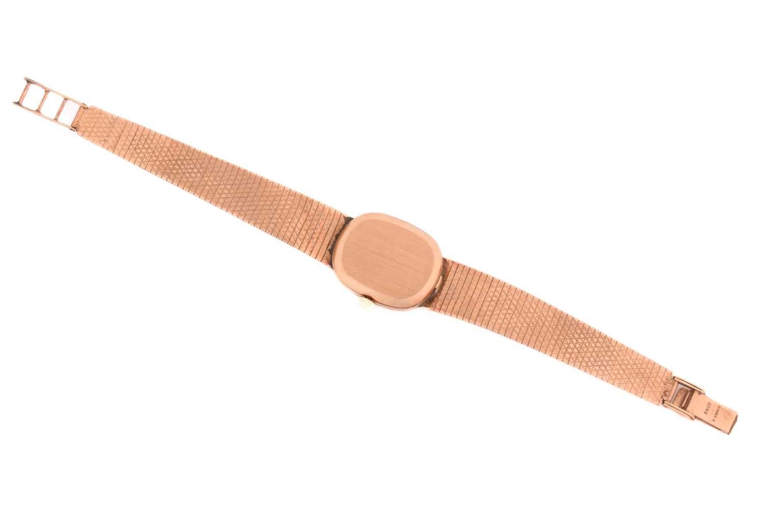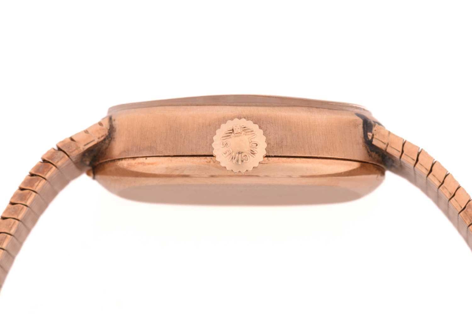 A Longines 9ct gold dress watch. Model: Serial: 51867936 Case Material: 9ct gold Case diameter: 19mm Dial: Gold Numerals: Baton Movement: Manual Calibre: 5602 Strap: Woven 9ct gold Buckle: Folding Box: No Papers: No