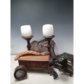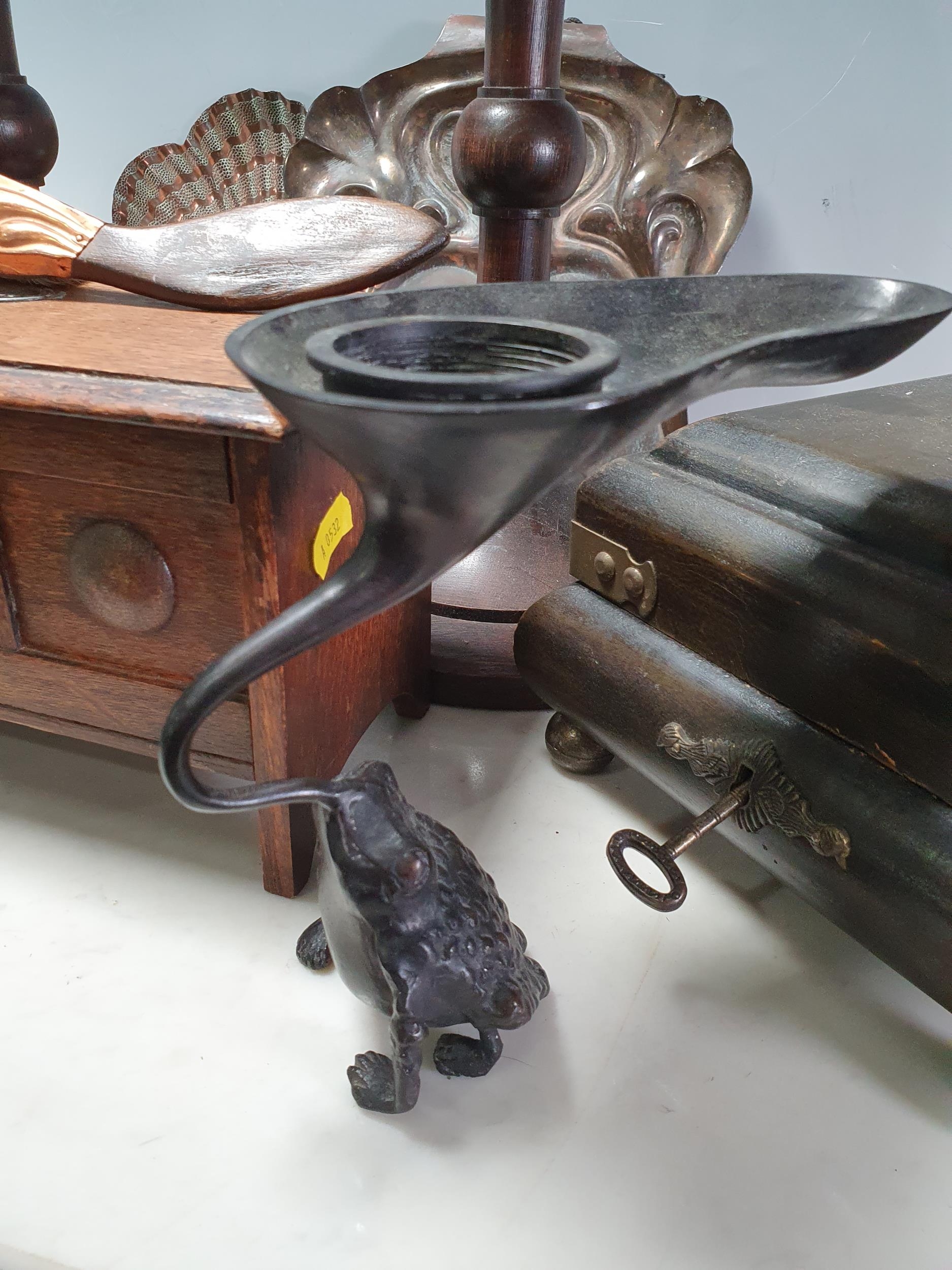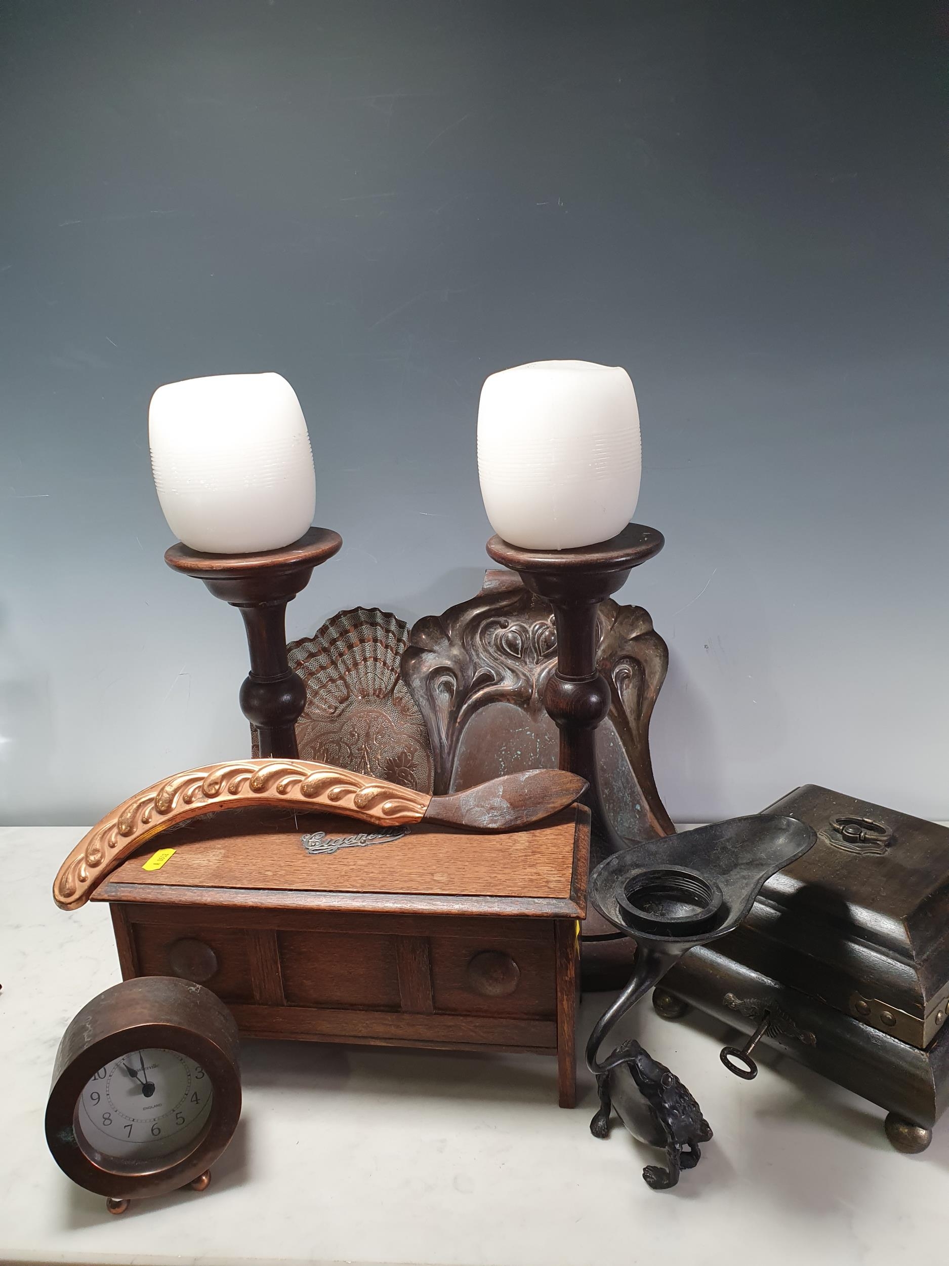 A toad Candlestick, pair of arts and craft Candlesticks, two smokers Cabinets etc..