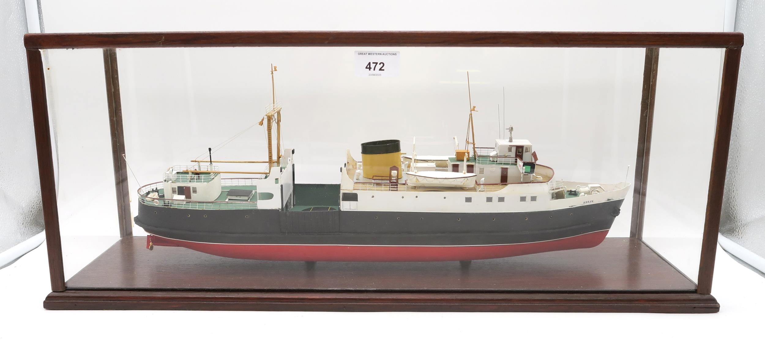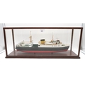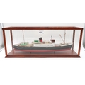 A cased model of the steam trawler Arran, together with another of MV Lochiel, both housed in Perspex cases measuring respectively 61cm, x 25cm x 19cm and 59cm x 23cm x 15cm, the Arran labelled to base "J. Garven Wood M.B.E., Modelmaker, Alloway, Ayrshire" (2)