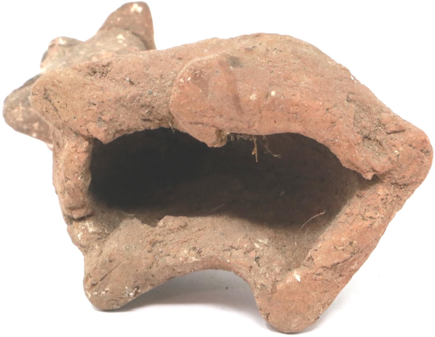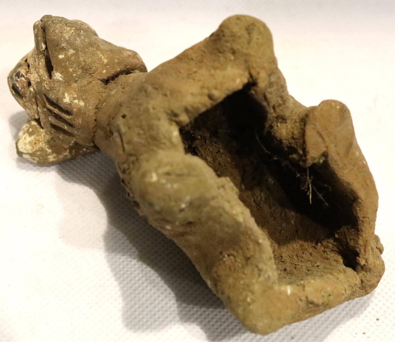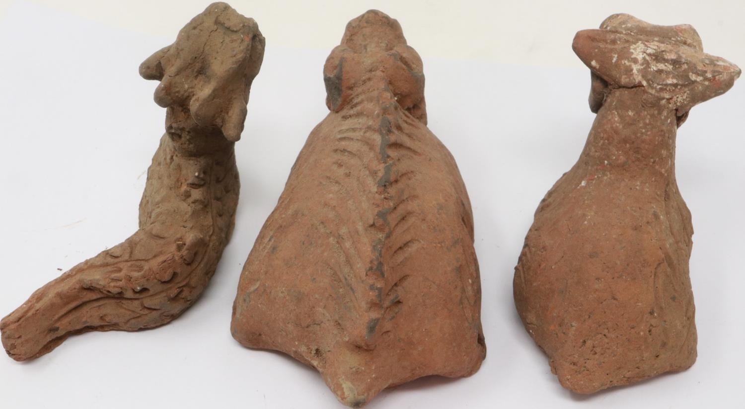 A Han Dynasty zoomorphic clay figure of a recumbent goat, serpent and another beast (3), largest H: 8 cm, L: 10 cm. P&P Group 1 (£14+VAT for the first lot and £1+VAT for subsequent lots)