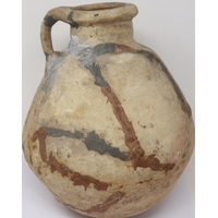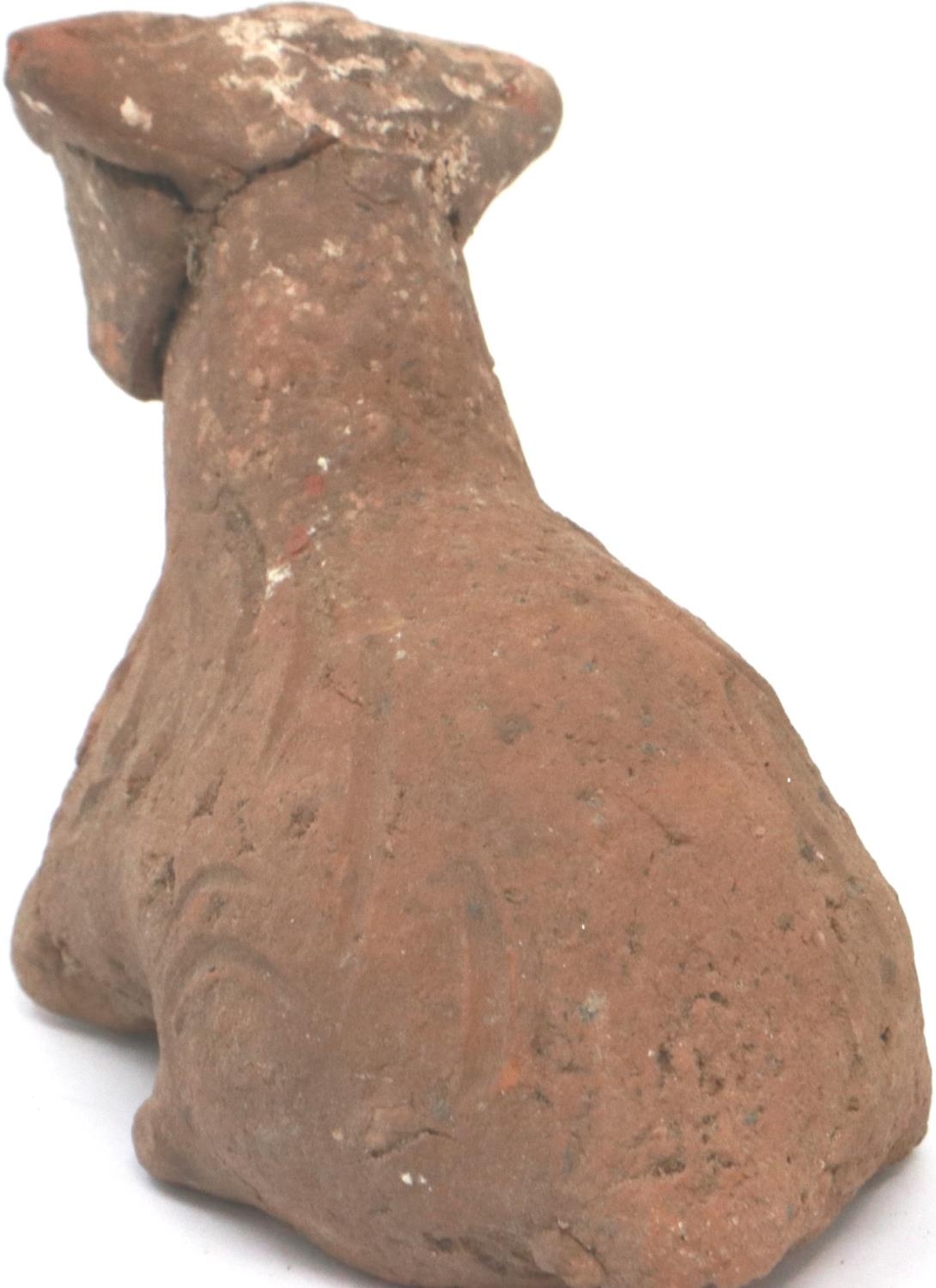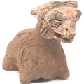 A Han Dynasty zoomorphic clay figure of a recumbent goat, se...