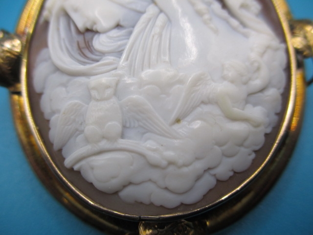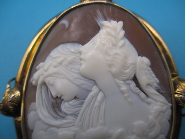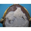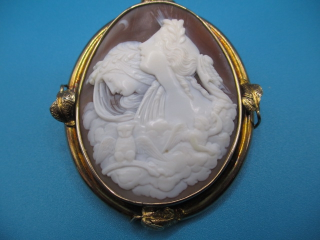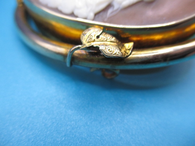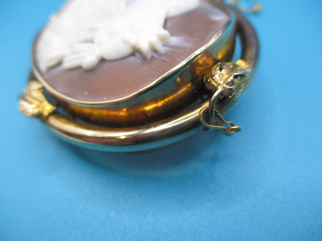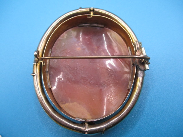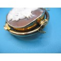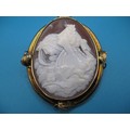 A large yellow metal mounted cameo brooch, in useable pre-owned condition