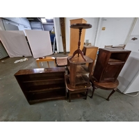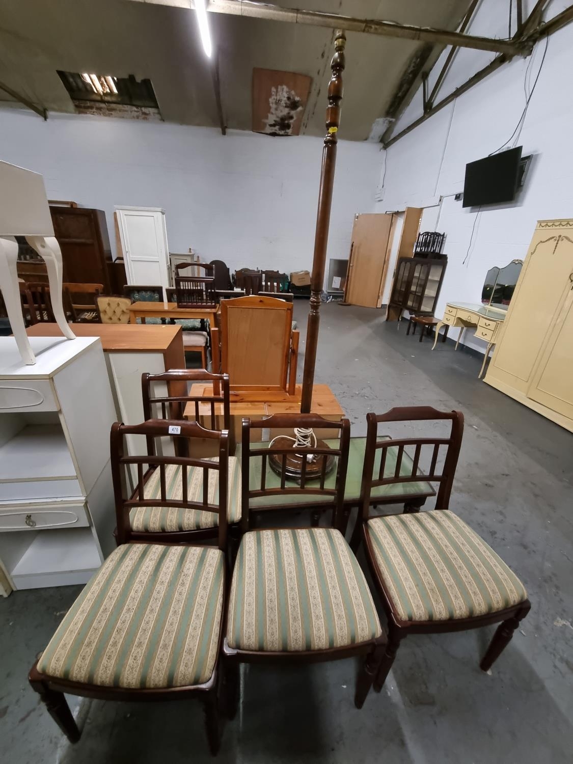 4 mahogany dining chairs, nest of tables and standard lamp