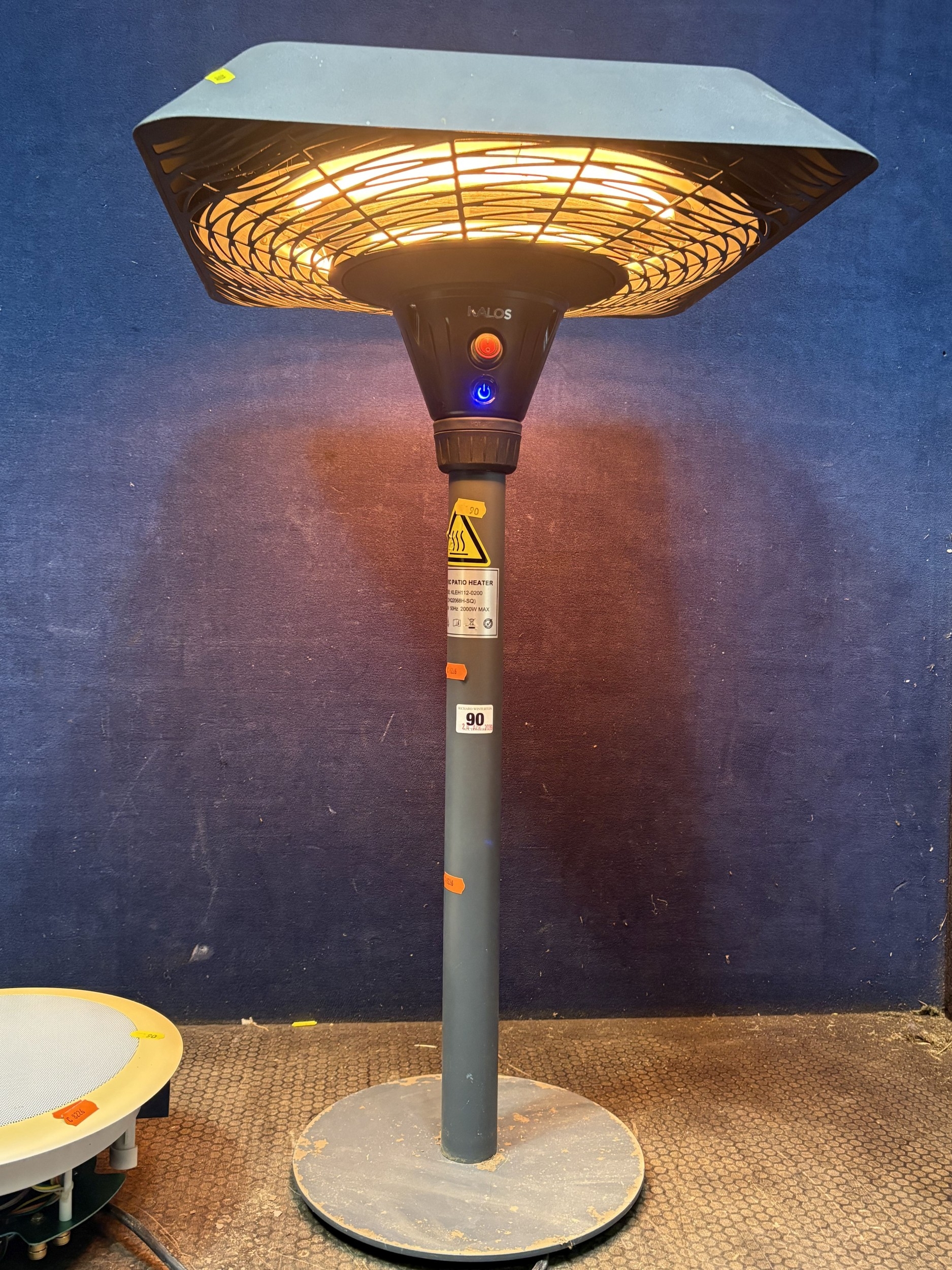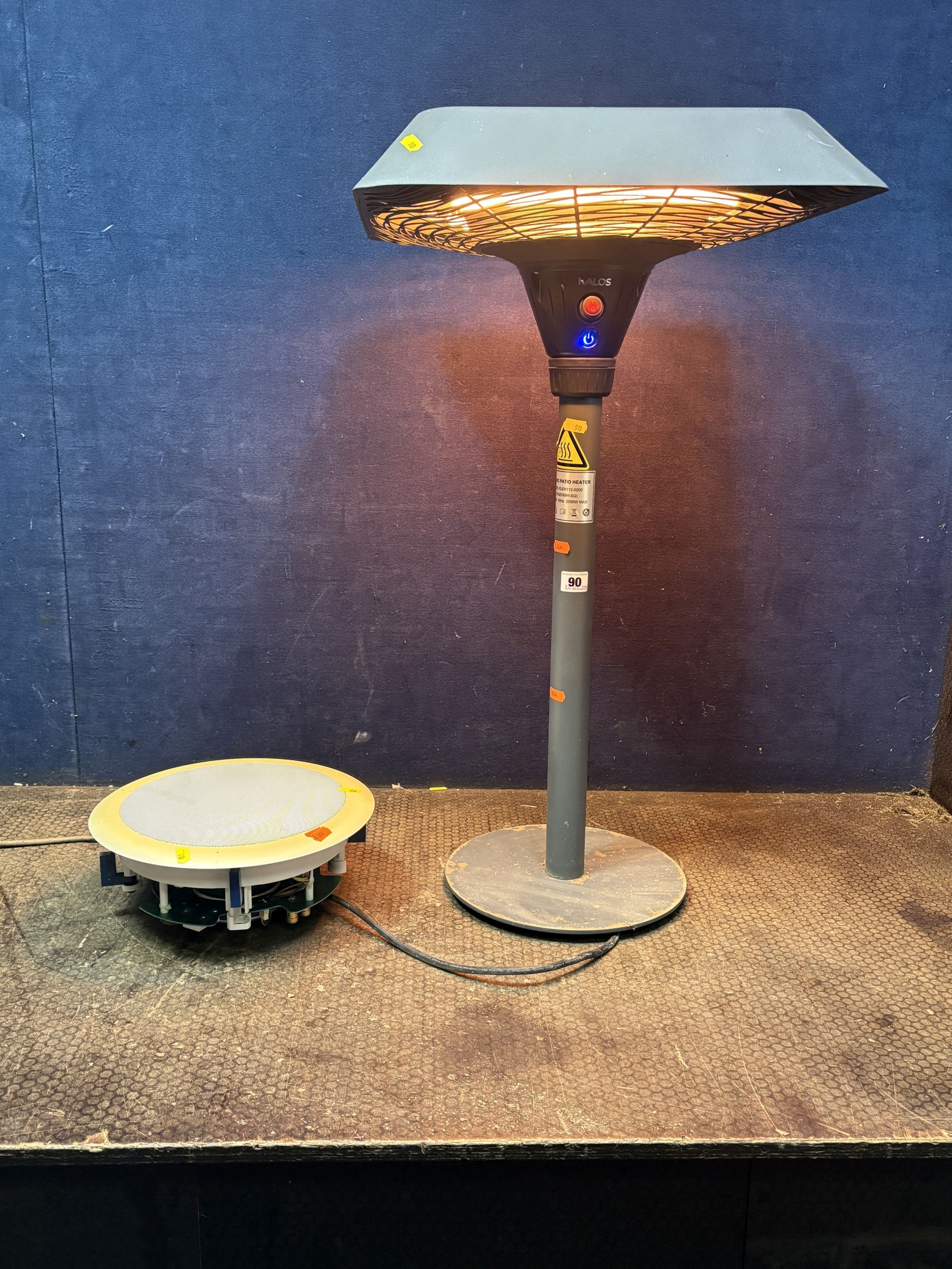 A PATIO HEATER, and a TruAudio R1-8 8'' poly in-ceiling speaker, condition report: PAT pass and heater working, speaker untested (2)