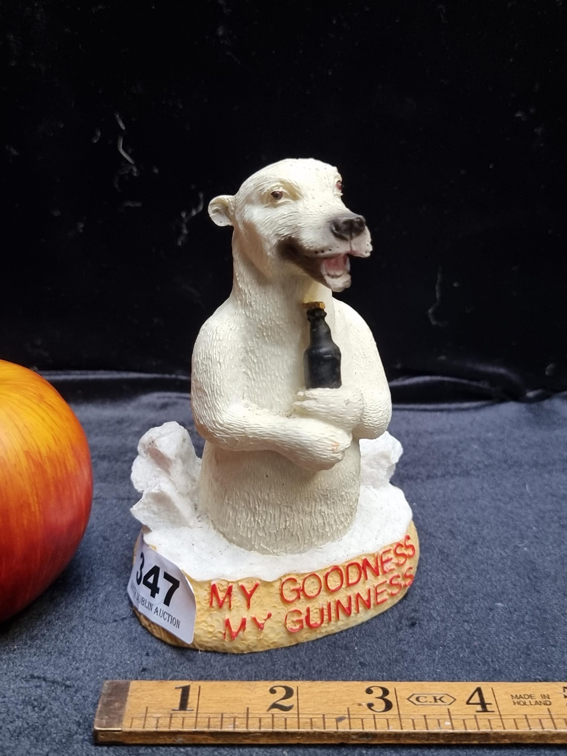 A collectable advertising Guinness Polar Bear figurine. The Polar Bear clutches a bottle of beer and is accompanied by the slogan ''My Goodness My Guinness''.