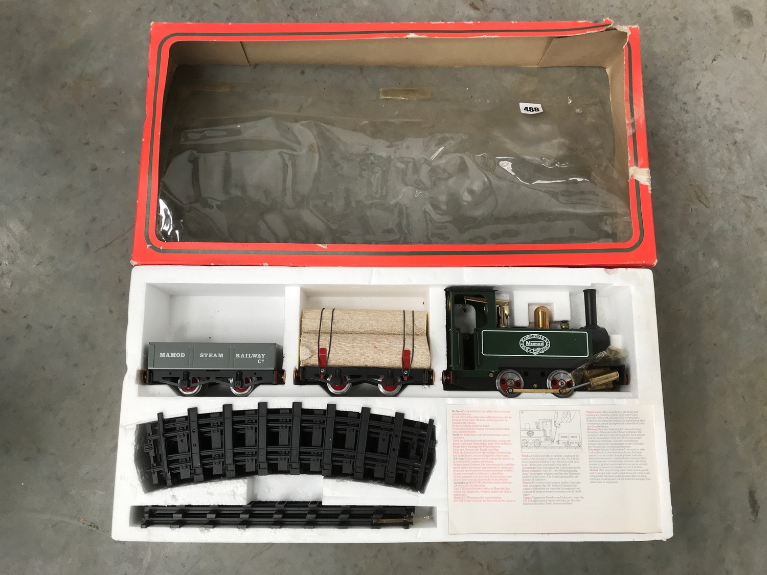 THE MAMOD STEAM RAILWAY COMPANY BOXED MAMOD STEAM LOCOMOTIVE 2 COACHES AND TRACK IN BOXED CONDITION SOME DAMAGE TO BOX LOCOMOTIVE AND STOCK APPEARS UNUSED AND IN VGC