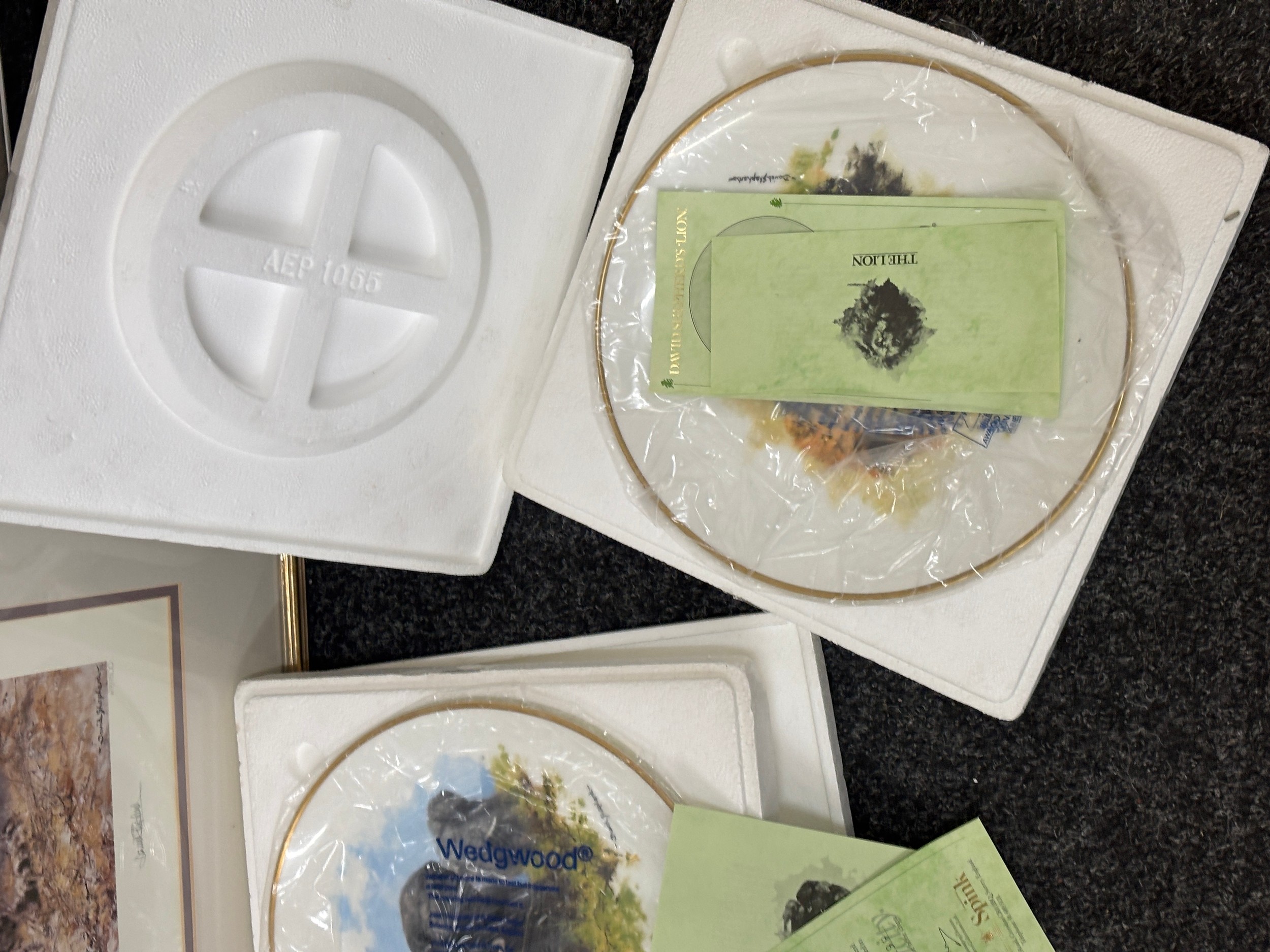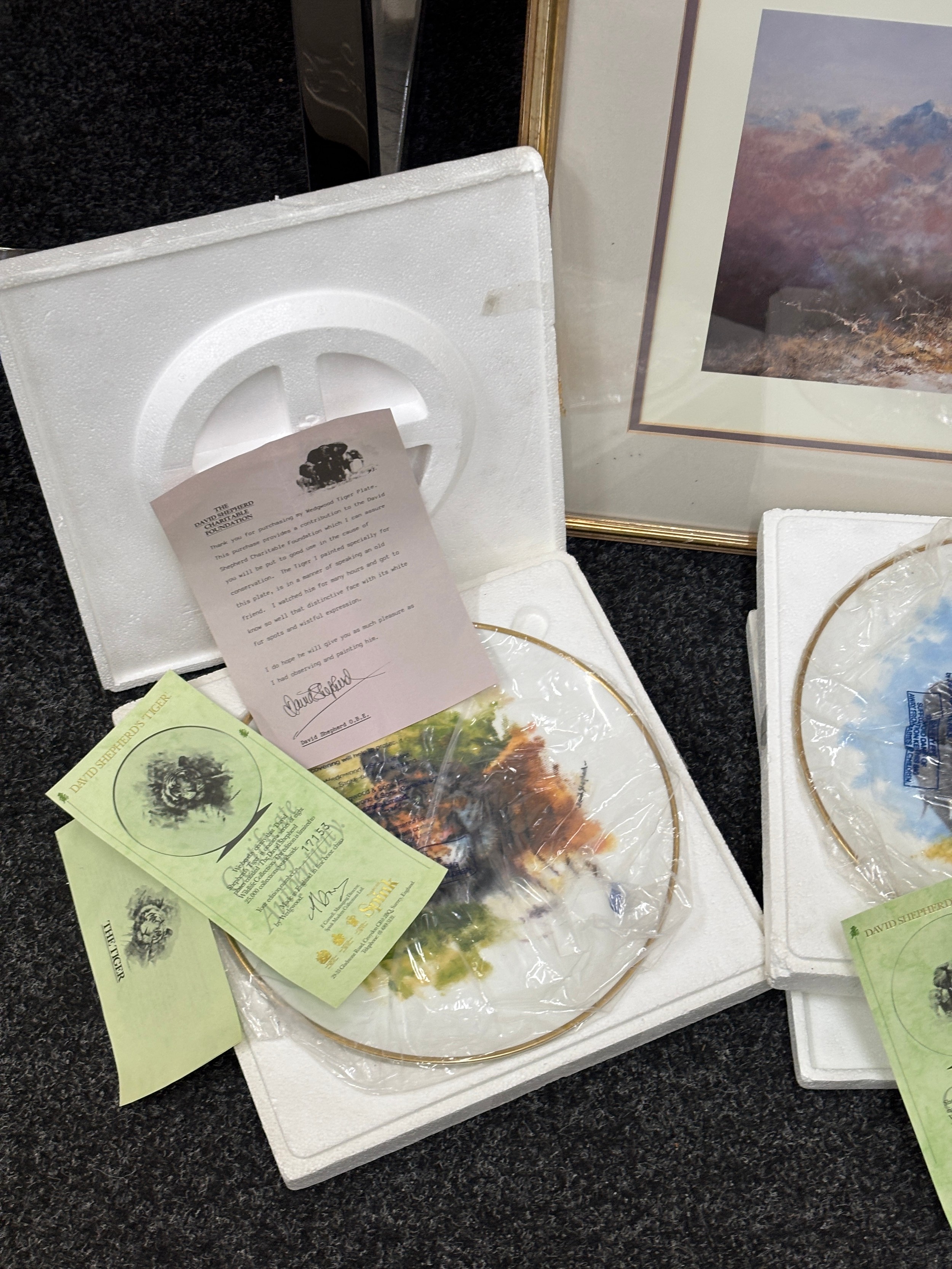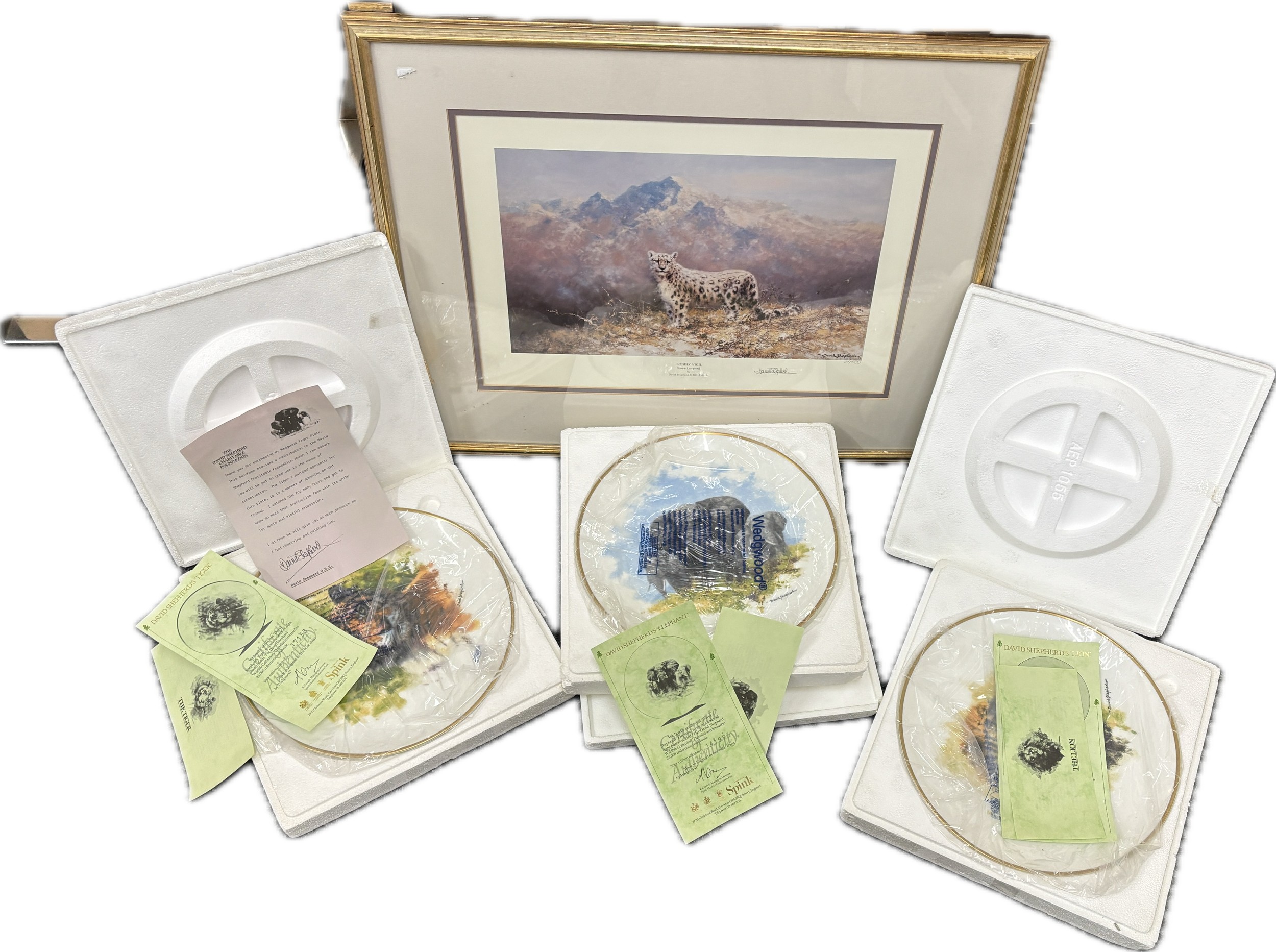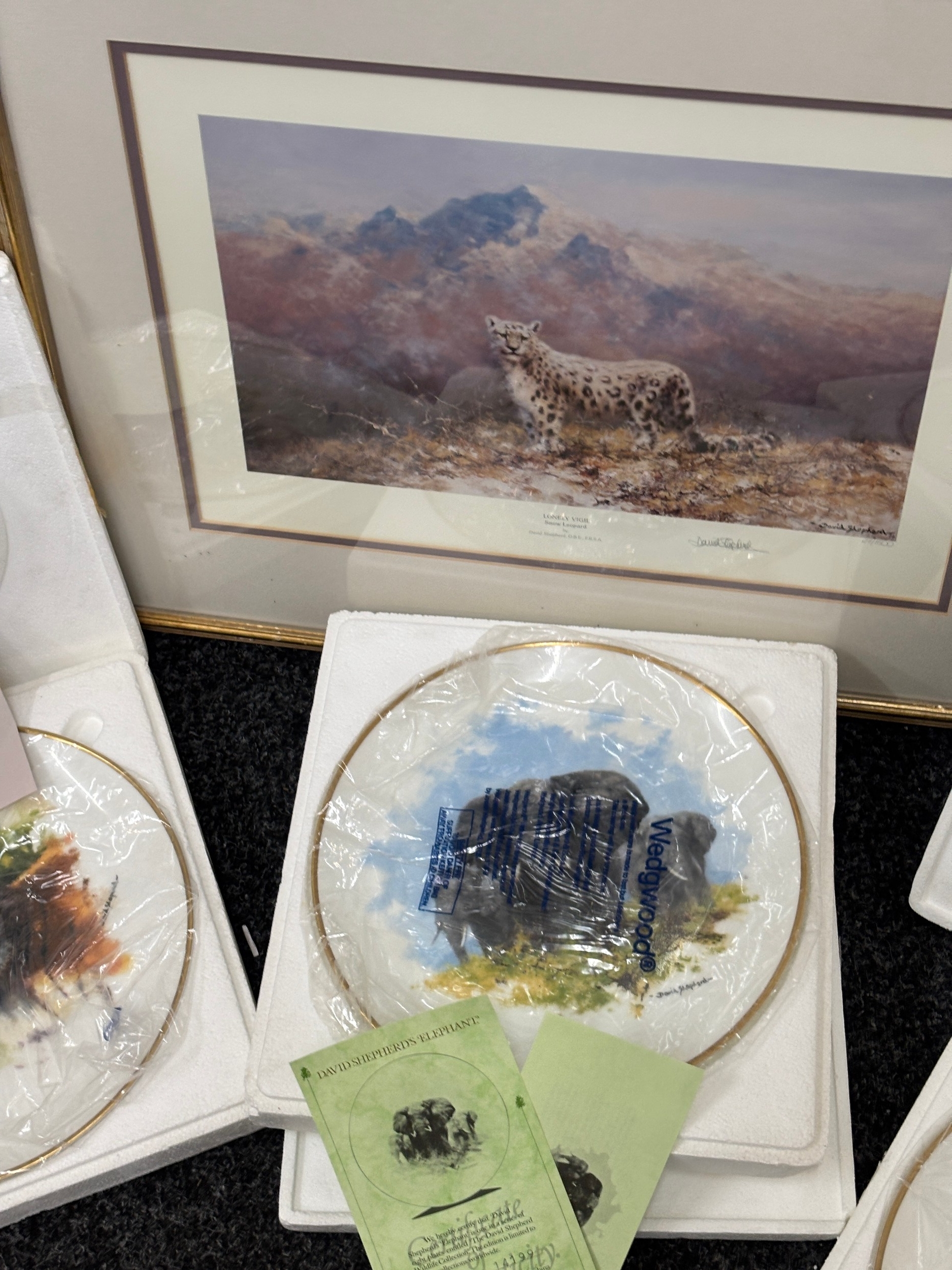 David Shepherd signed print, this print is a part of a large run, 27/1500, it is pencil signed, together with a selection of three Wedgwood David Shepherd collectors plates