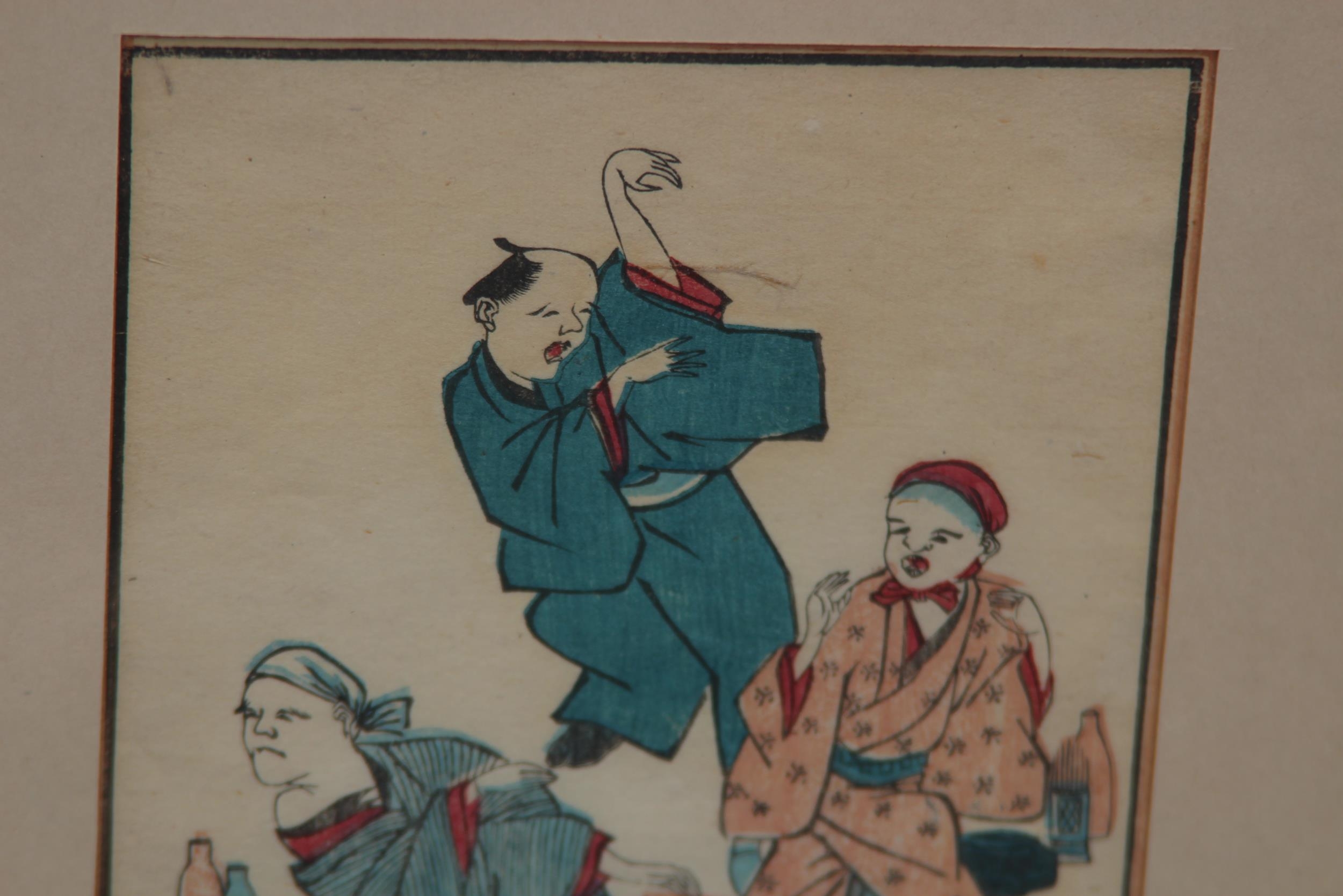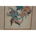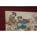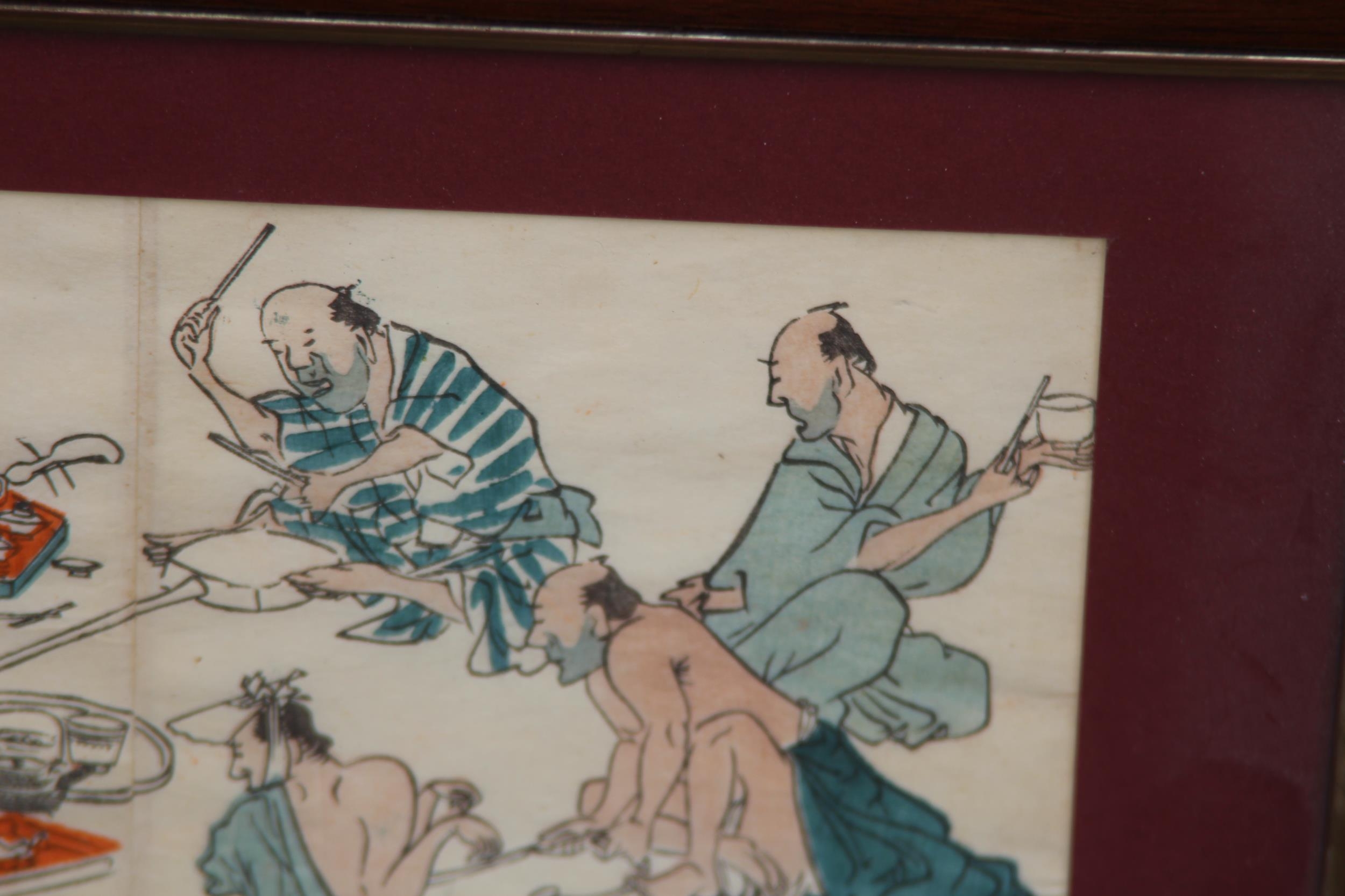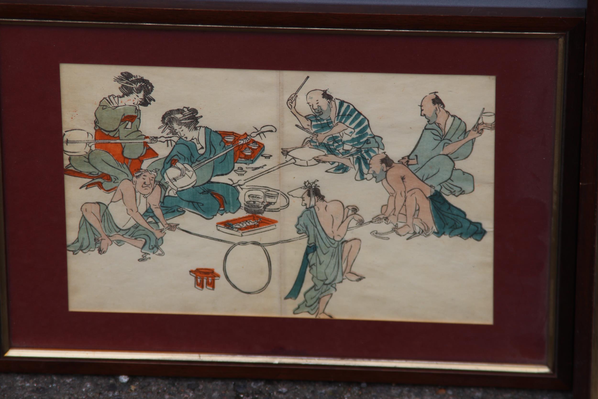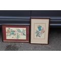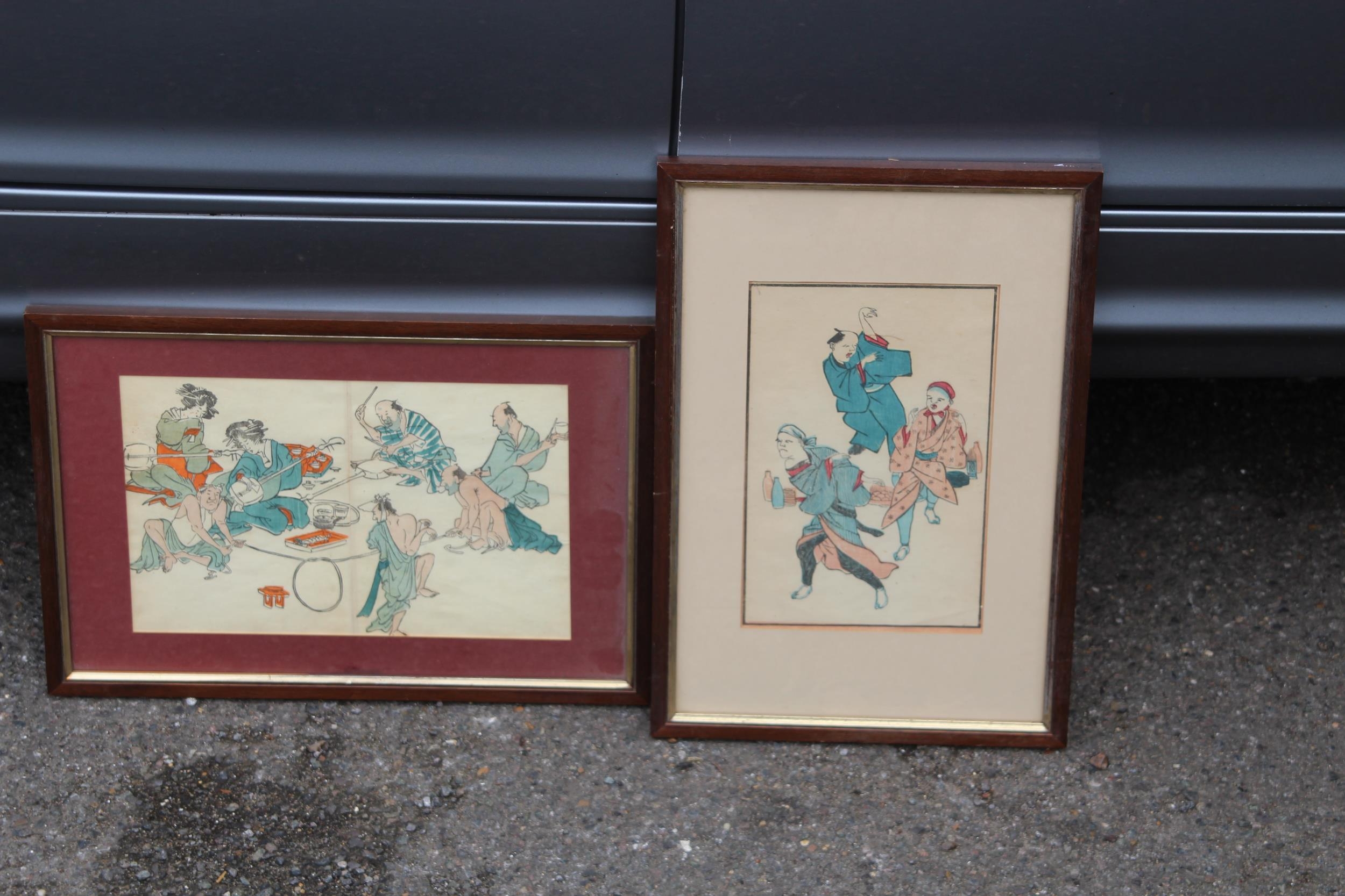 TWO FRAMED AND GLAZED ORIENTAL COLOURED BOOK PRINTS 36 X 25CM