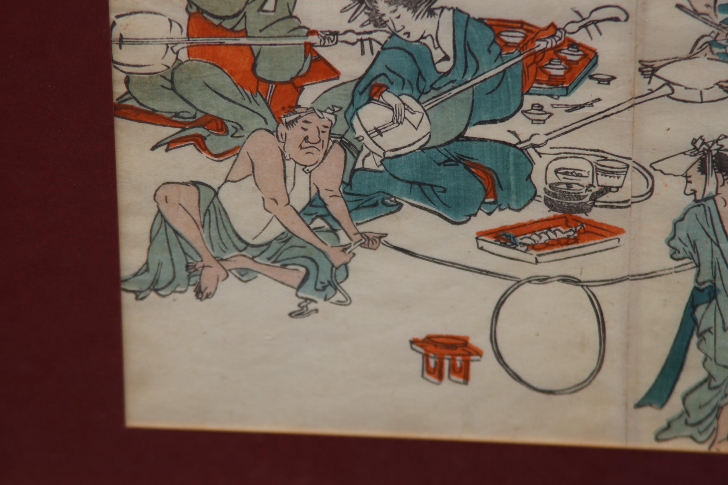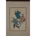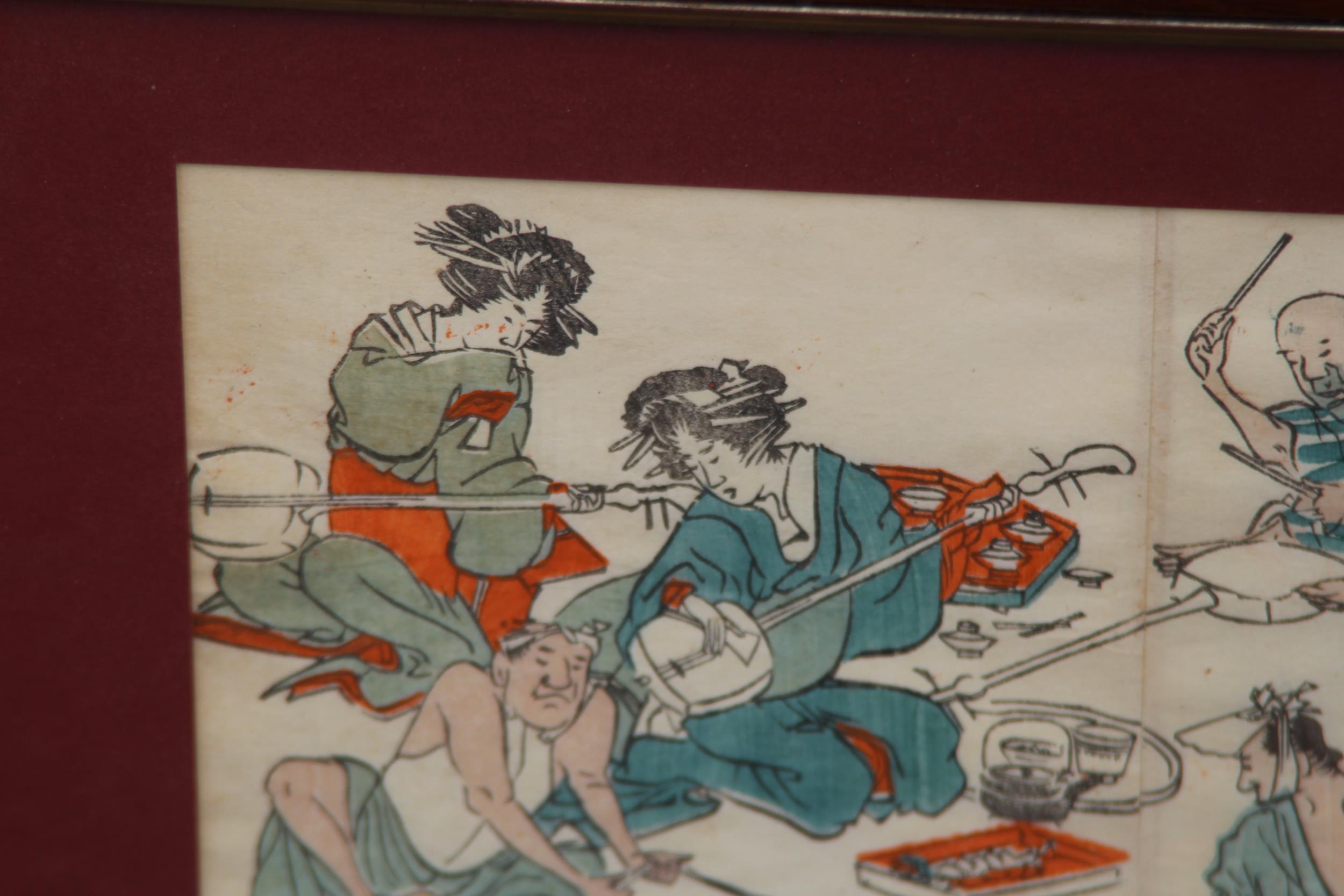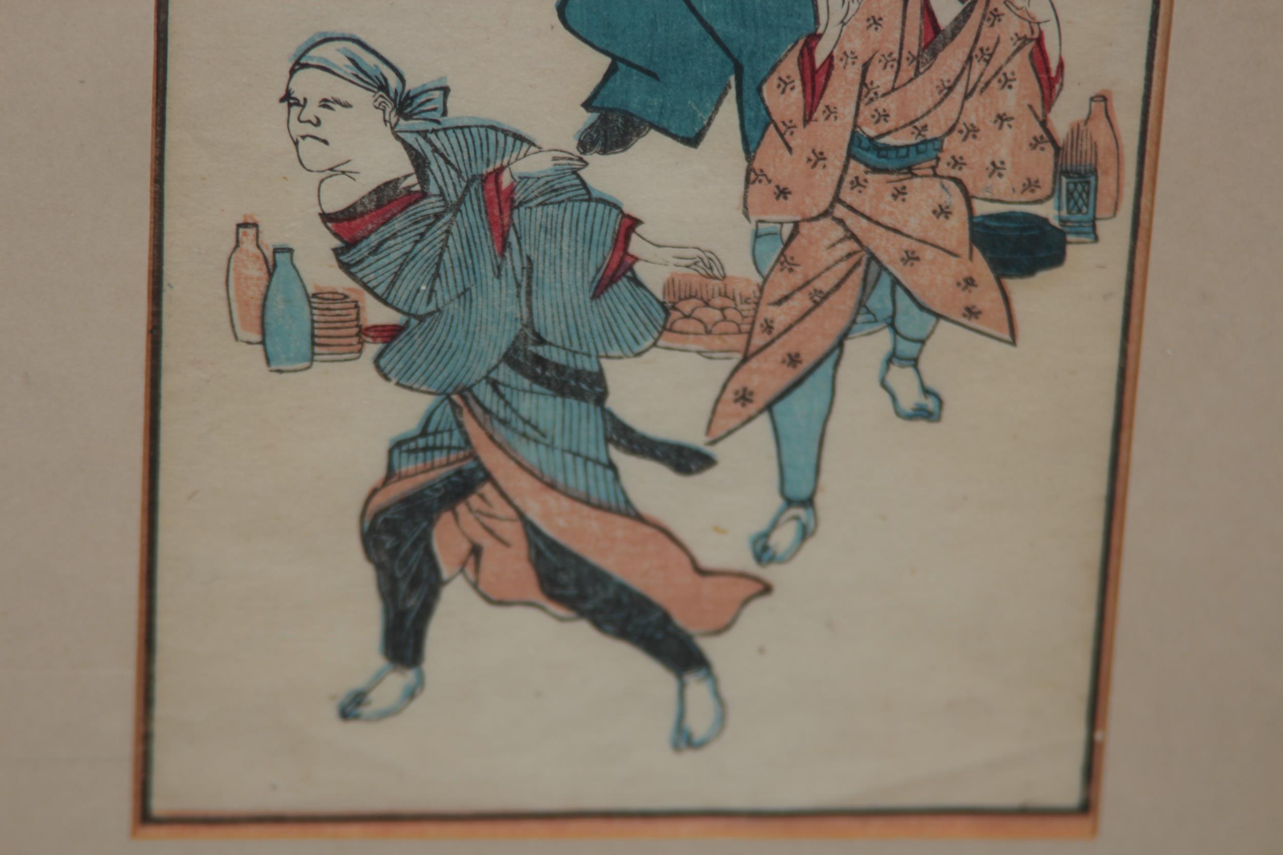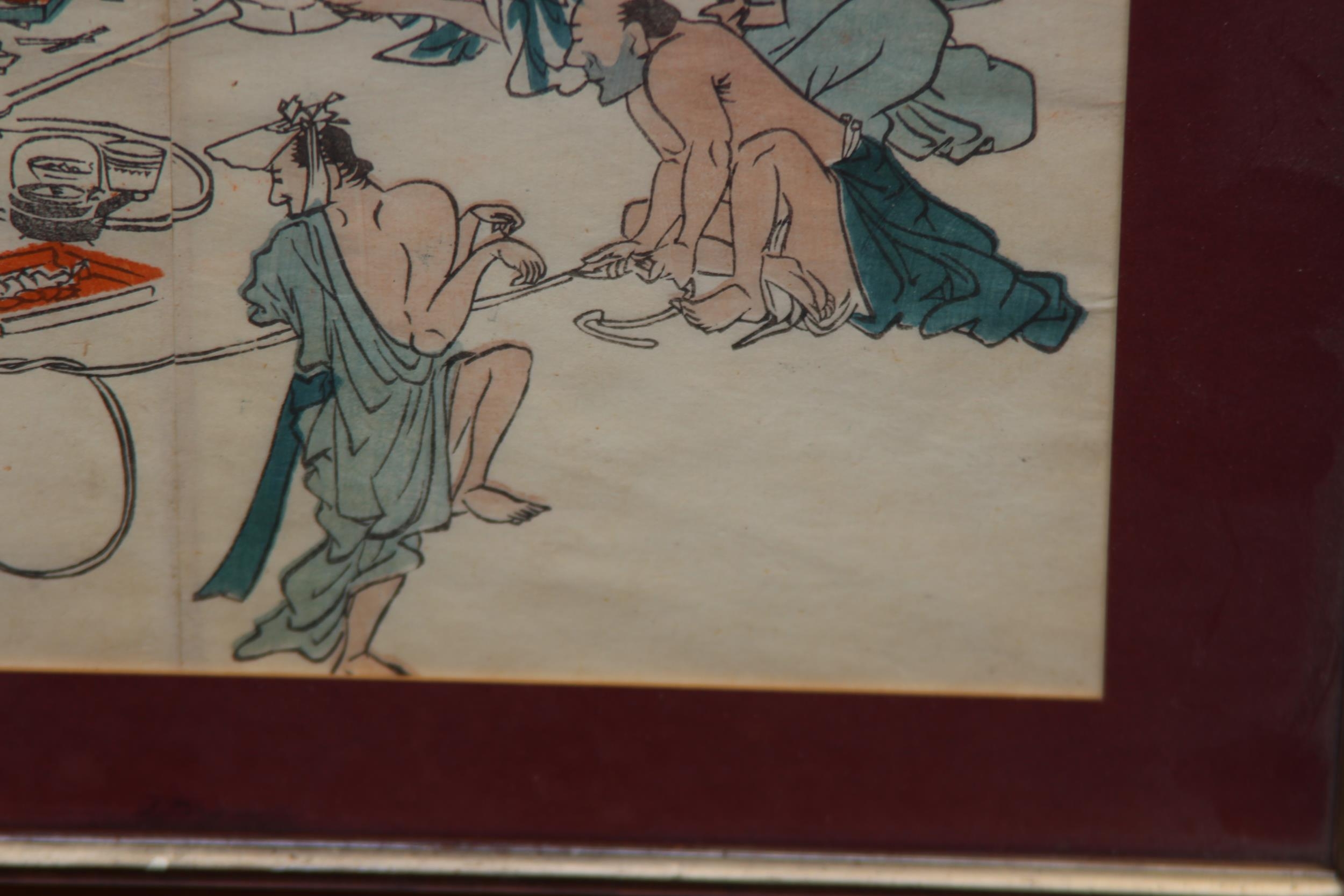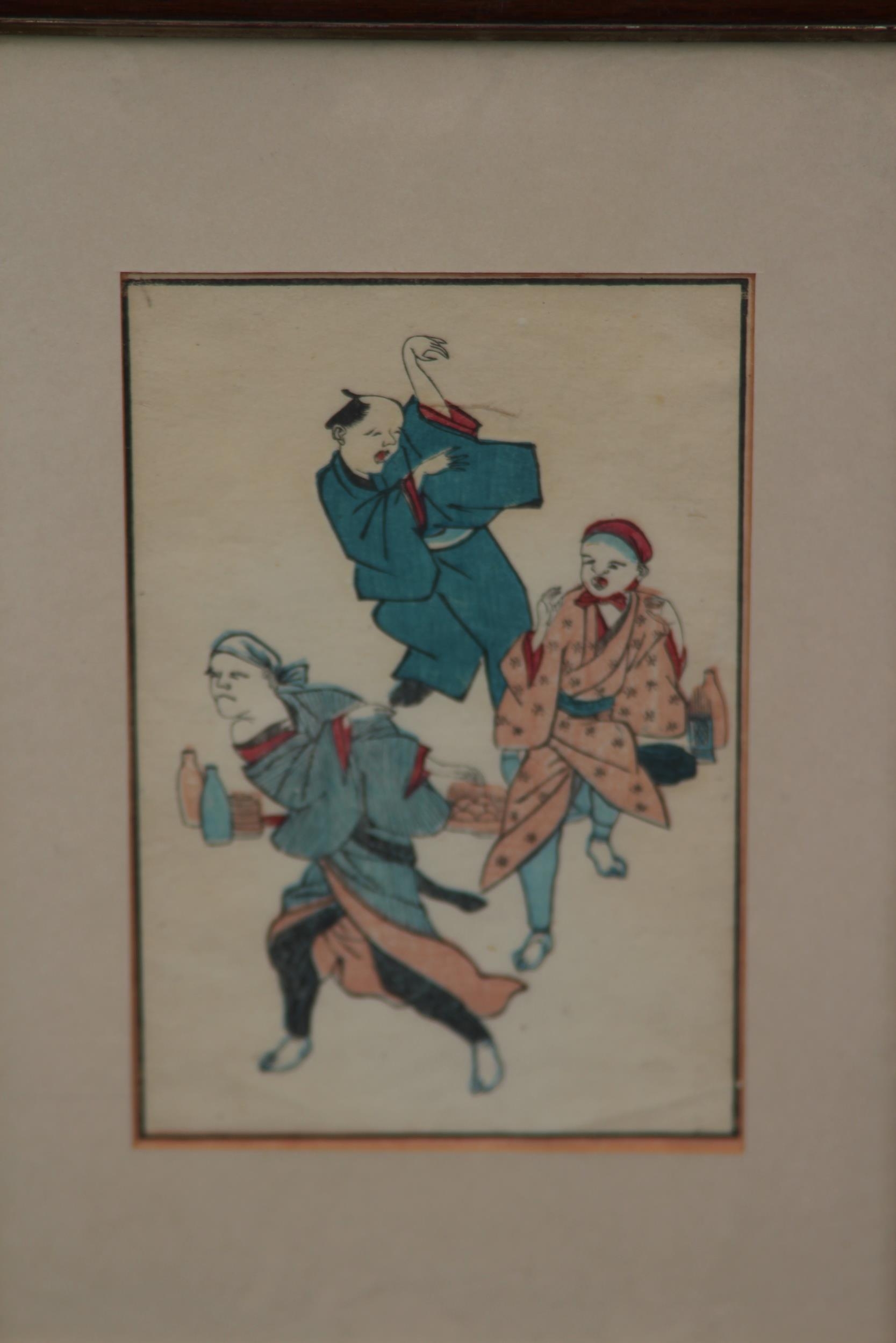 TWO FRAMED AND GLAZED ORIENTAL COLOURED BOOK PRINTS 36 X 25CM