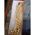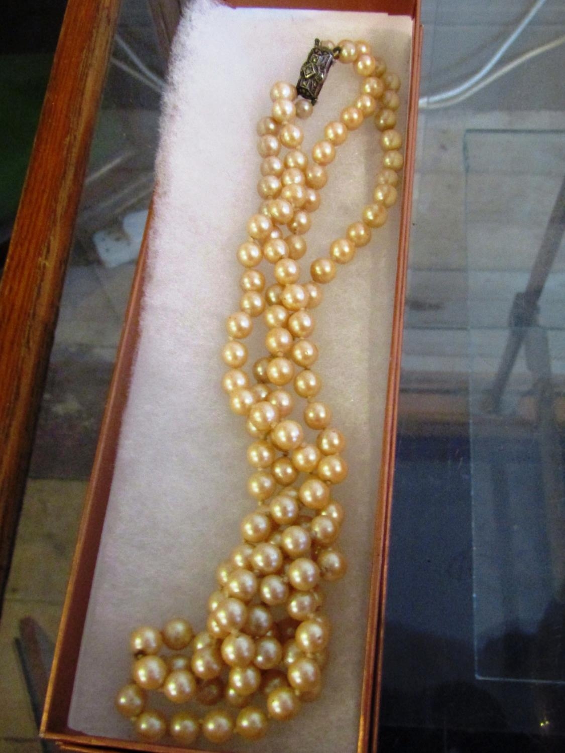 Vintage Double Strand Ladies Pearl Necklace with Silver and Diamond Decorated Clasp