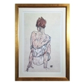 EGON SCHELE (AUSTRIAN 1890 - 1918). SEATED WOMAN. offset lithograph, measuring 97cm x 71cm overall, framed and glazed.
