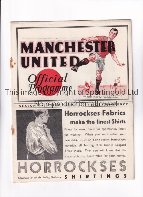 MANCHESTER UNITED Programme for the home League match v Bradford City 25/11/1933, slightly creased and staples removed. Generally good