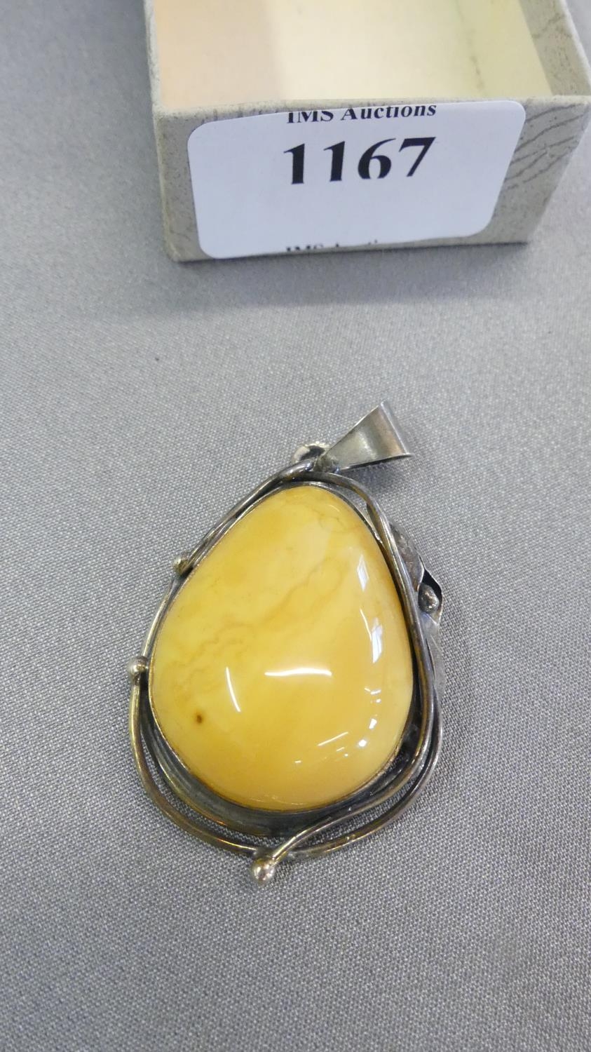 Silver Mounted Butterscotch Amber Pendant