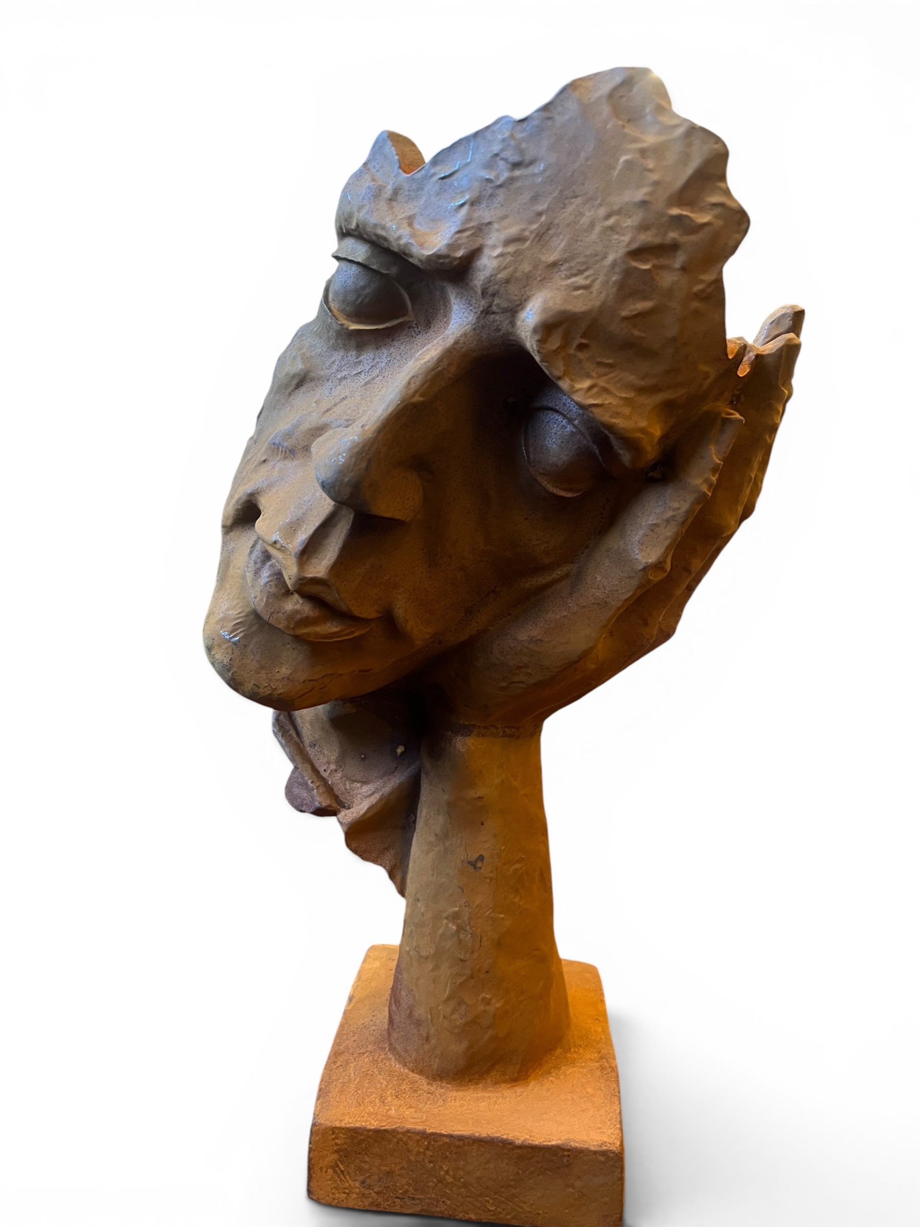 Large Cast Iron Sculpture Depicting "Hear No Evil" - 57 cm x 18 cm