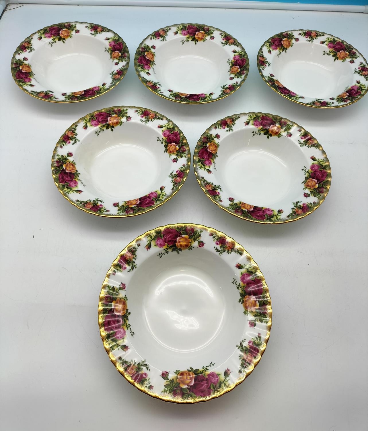 Royal Albert 20cm Rimmed Soup Bowls (6) in the 'Old Country Roses' Pattern.