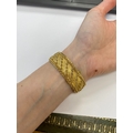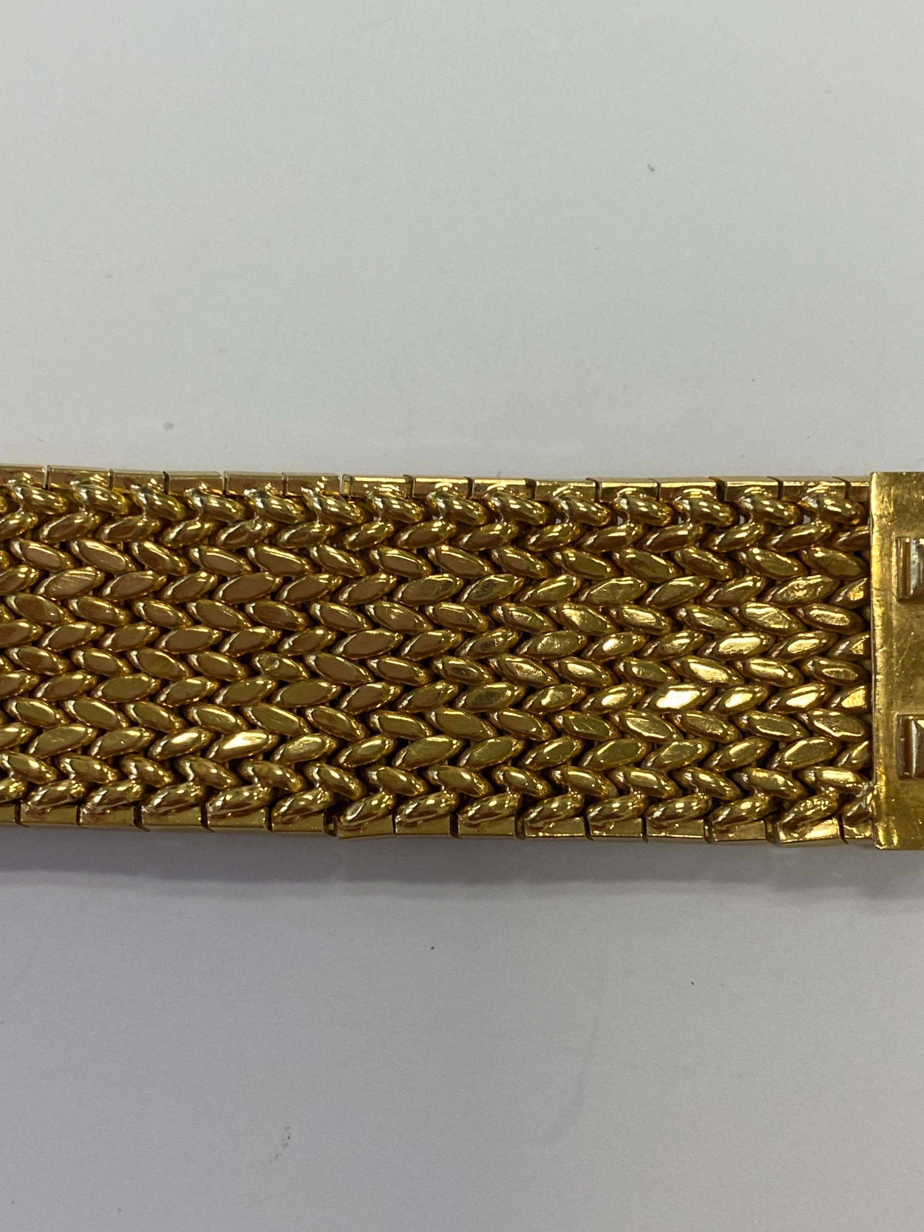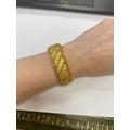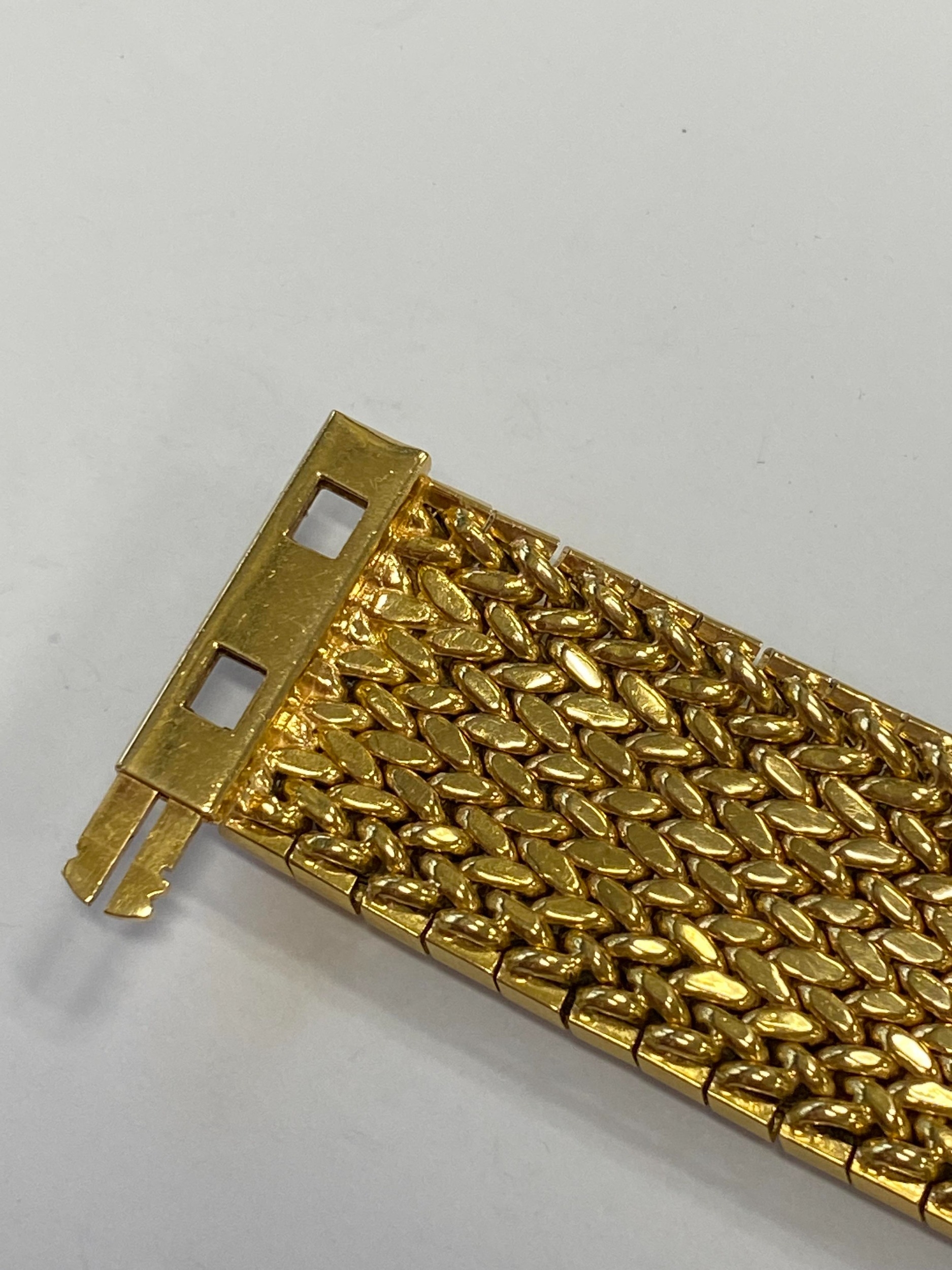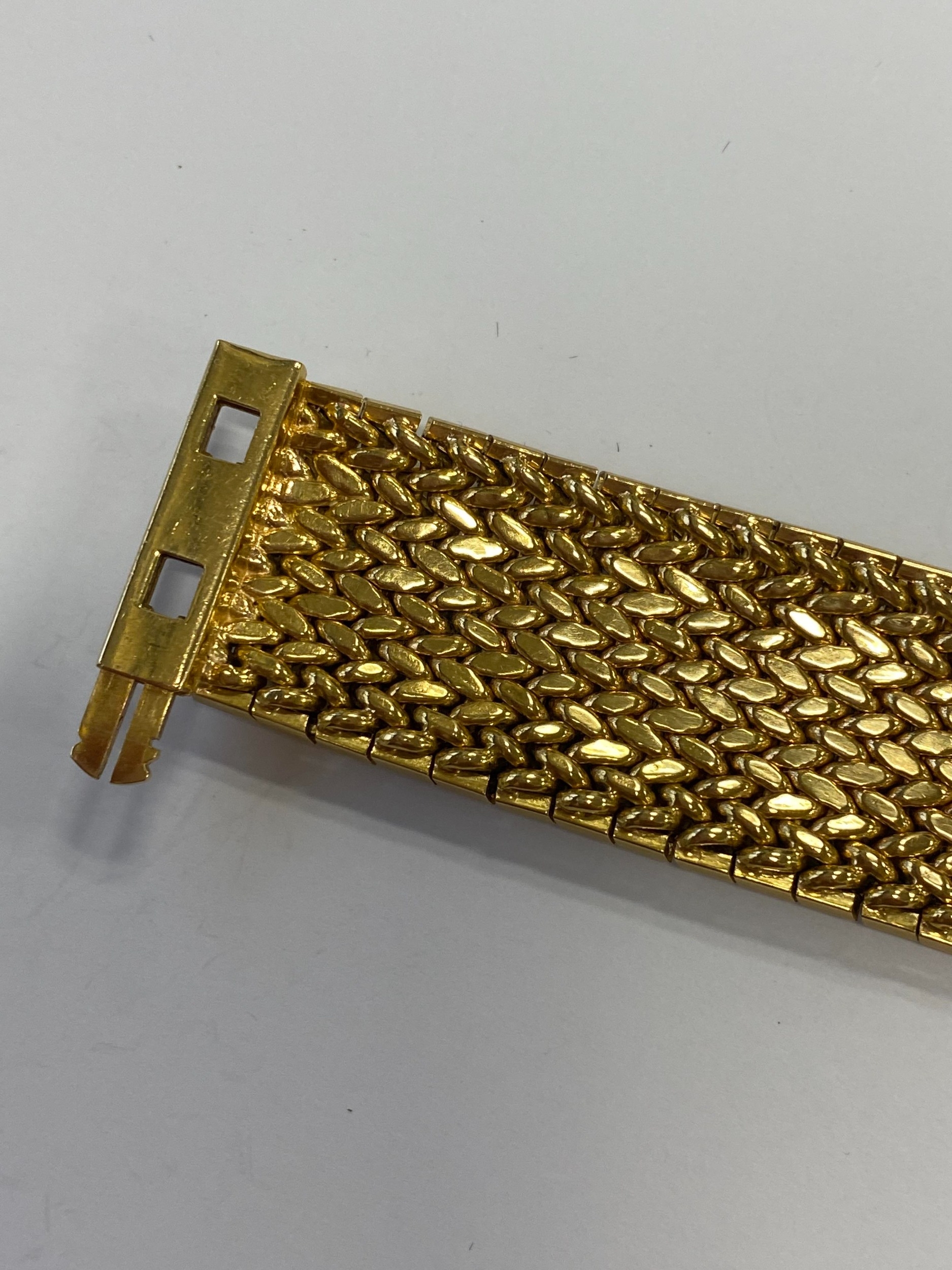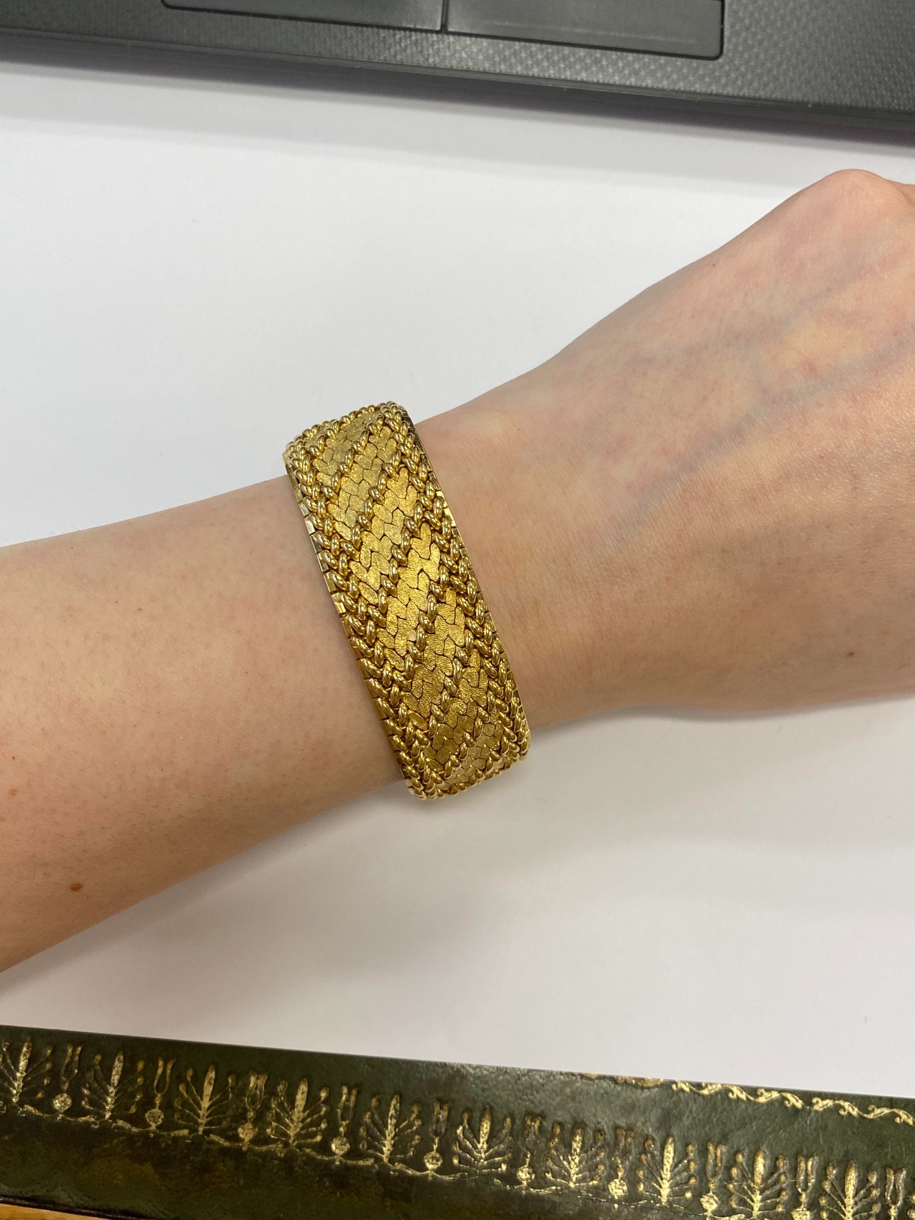 A French yellow metal bracelet, the polished and textured integral links of stylised leaf design, with integral pin and slide clasp, 18.5cm long, weight approx 55.4g Condition:Eagle marks to clasp, clasp in good working order, general wear but no significant visible damage, refer to images
