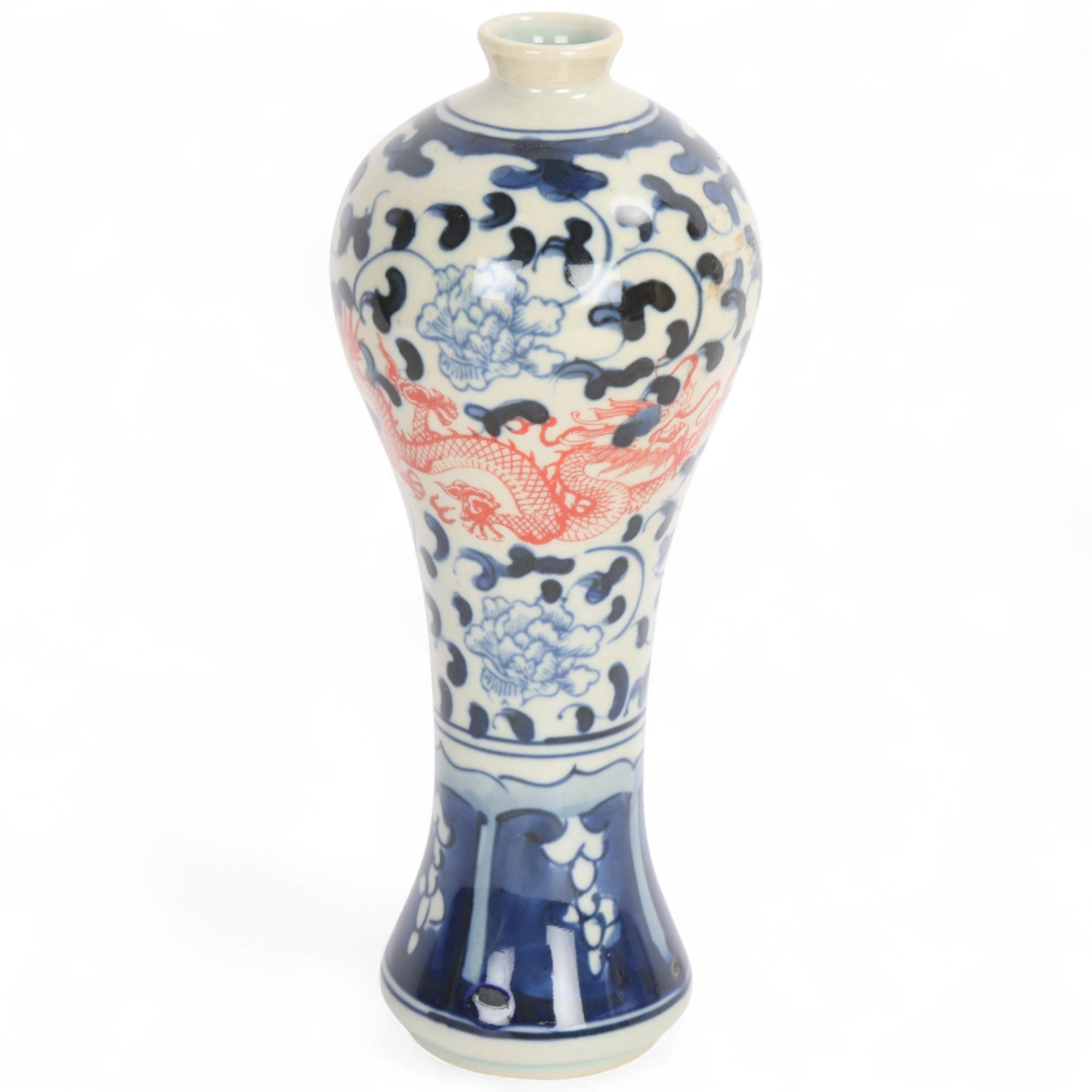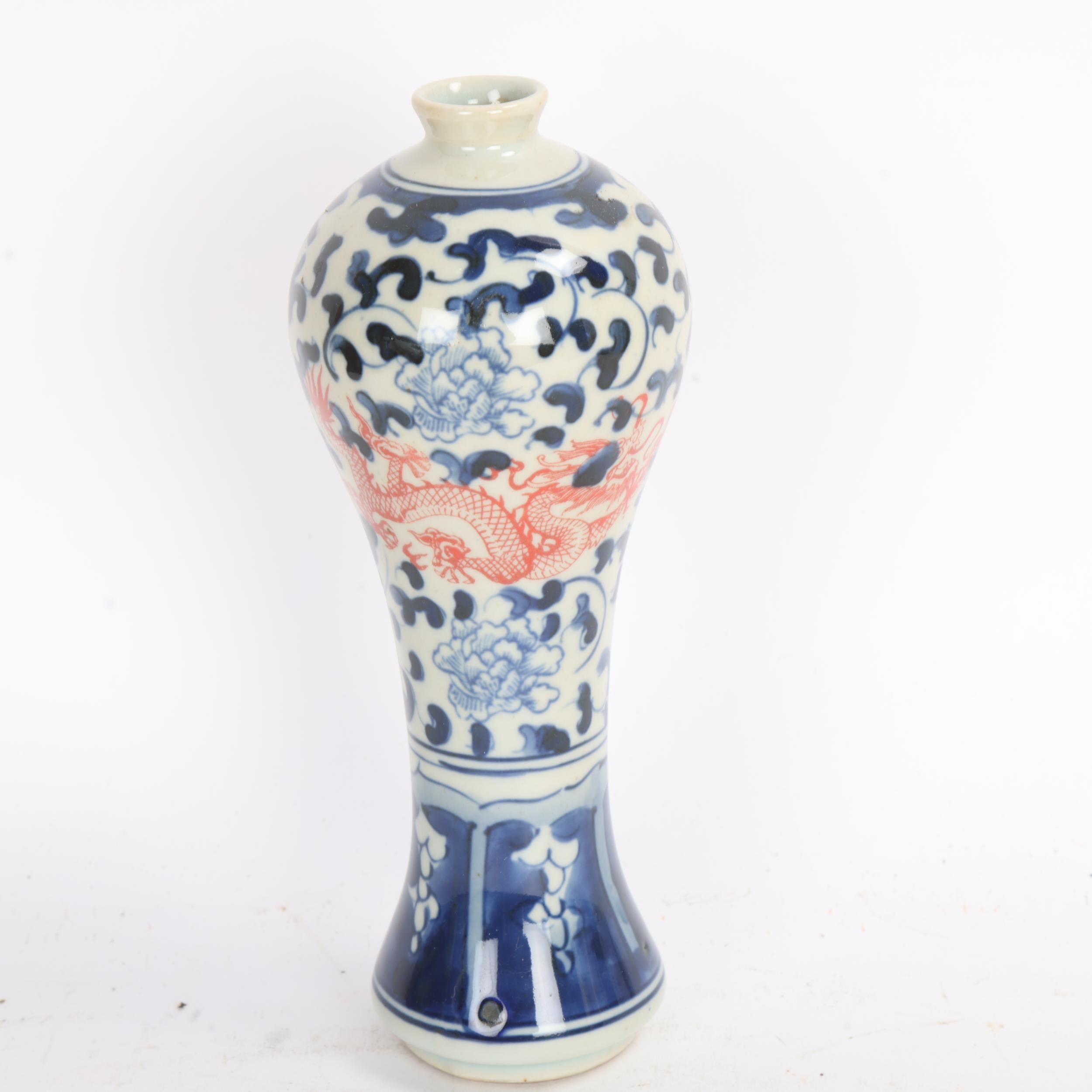 A small Chinese porcelain vase with iron red dragon design, height 17cm