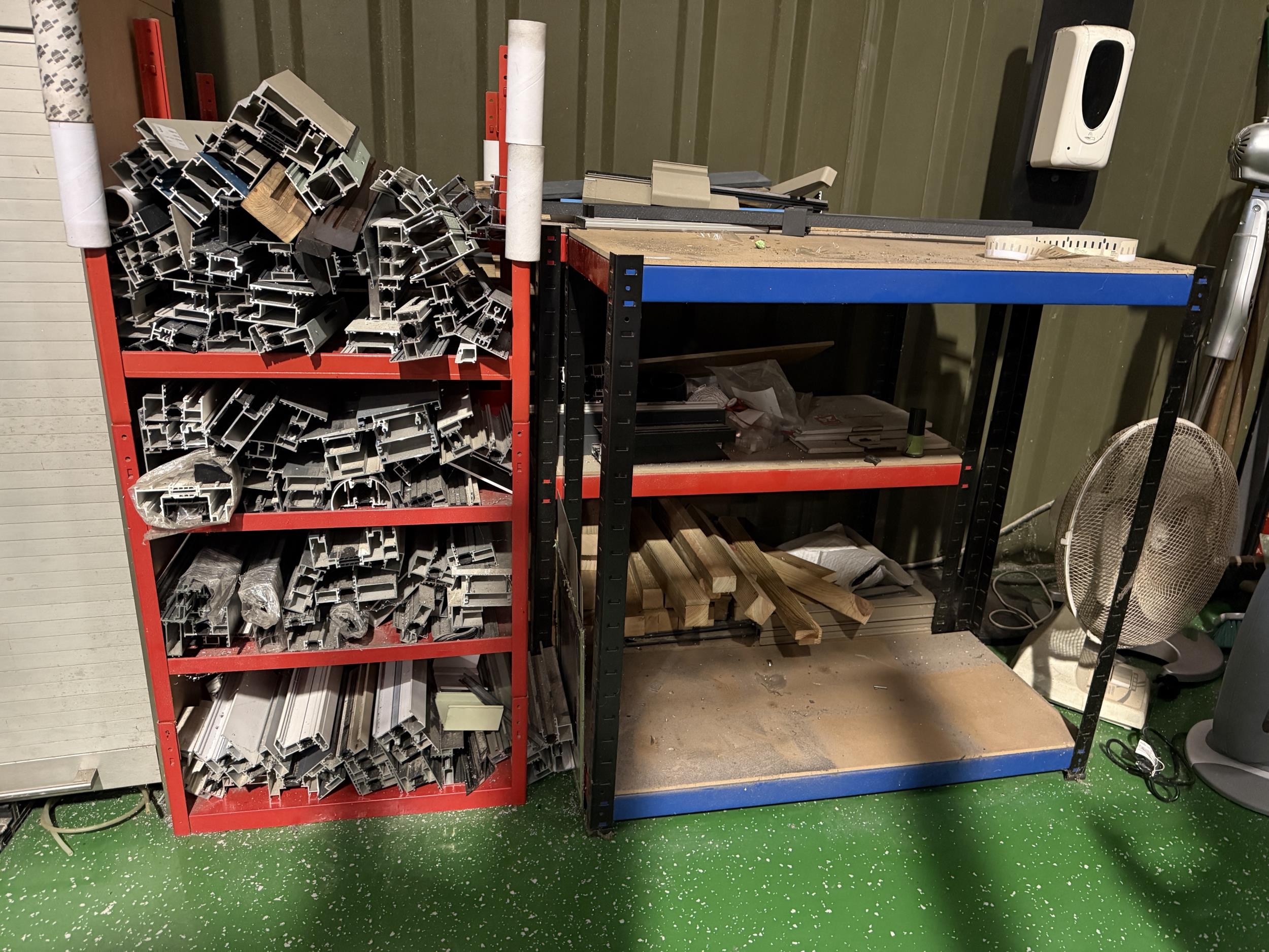 Two Wurth four tier shelf units together with a three tier shelf unit and three tier shelf unit (contents included)