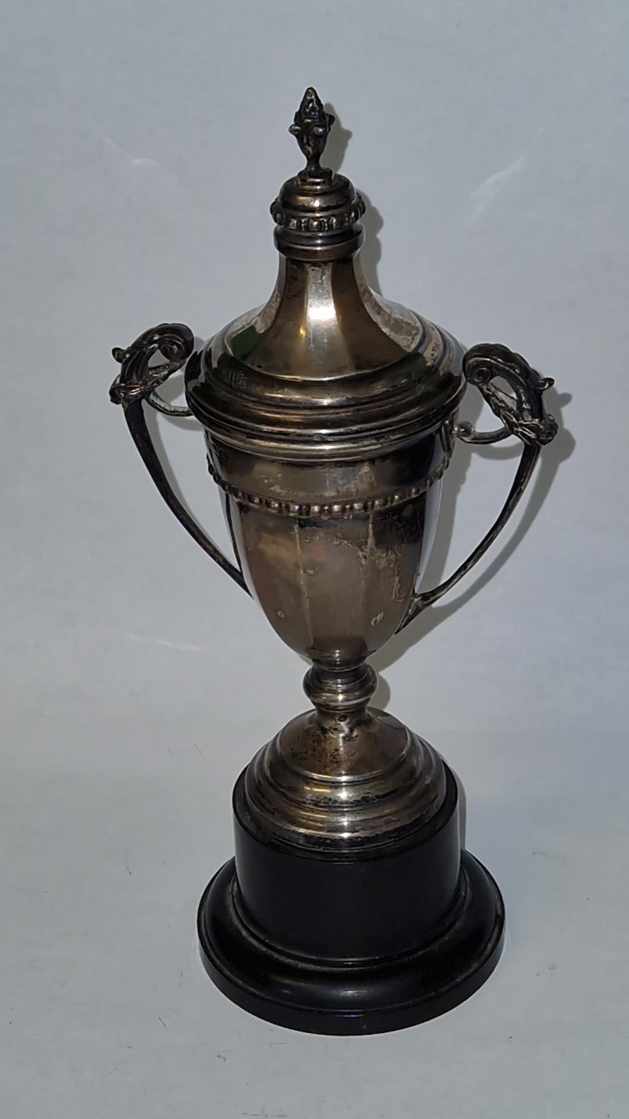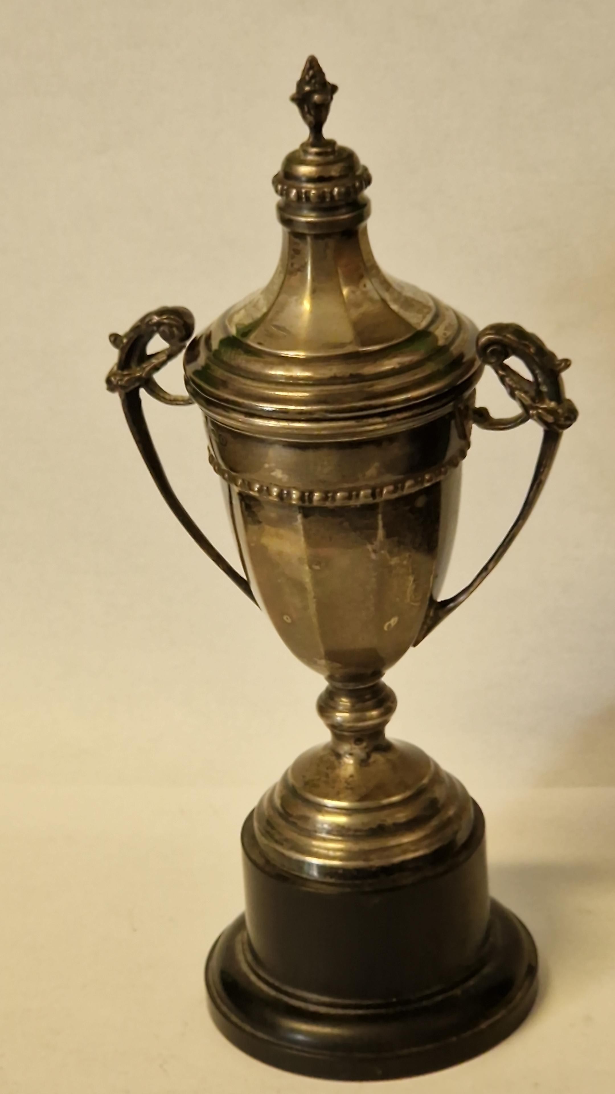 SMALL SILVER HALLMARKED TROPHY ON BASE - 19CMS H