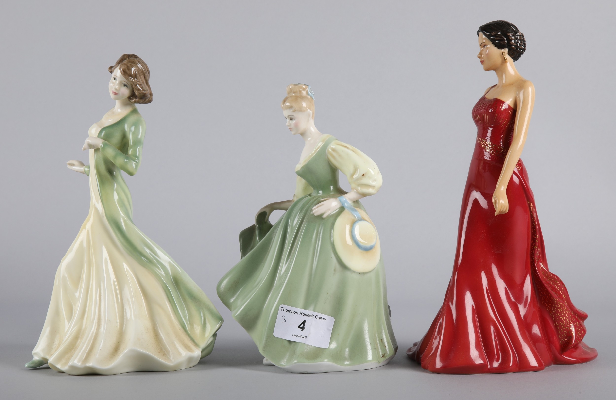 Three Royal Doulton figures to include Fair Lady HN2193, Alicia HN5014, and Hayley HN4556 (3)