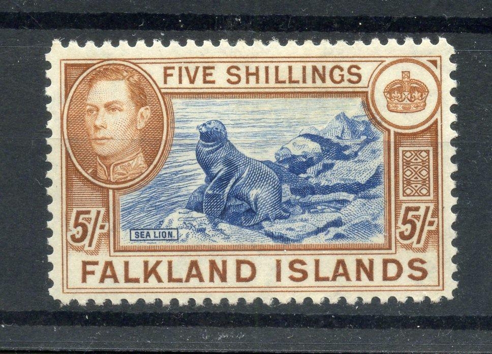 FALKLAND IS 1938 - 50 5/- steel blue and buff-brown mint. SG 161d. Cat £425.