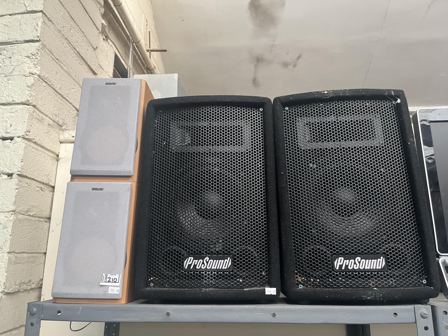 Pair of Pro Sound PS08 speakers and Sony bookshelf speakers