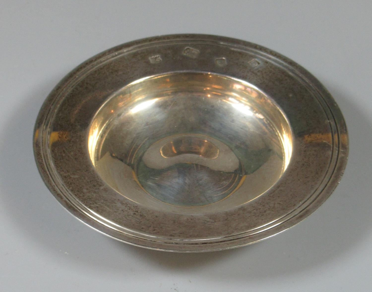 Small silver pin dish of circular form. London hallmarks. 1.95oz troy approx.