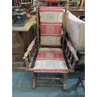 AMERICAN ROCKER, stained beech framed rocker chair with upholstered seat and back