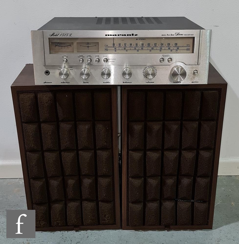 A Marantz model 1515L stereophonic receiver, serial number 80N021048, together with a pair of Marantz 4G speakers, serial numbers 142995 and 142996. (3)