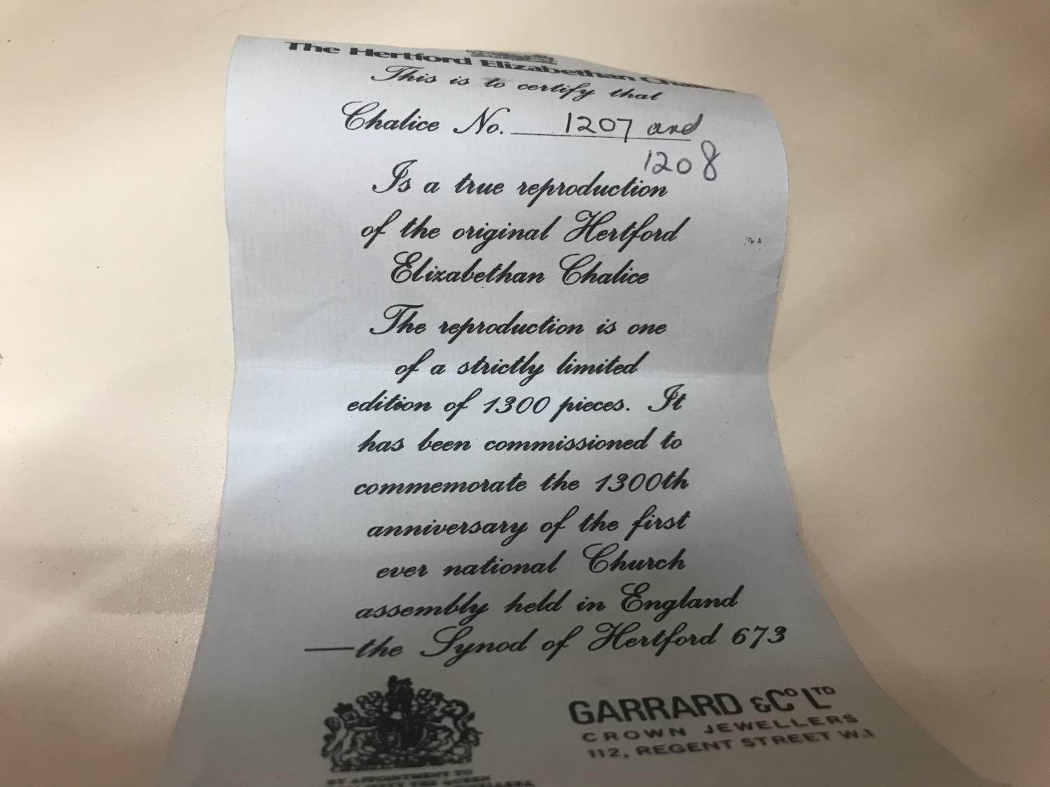 Hall Marked Silver by Garrods, London reproduction Hertford Chalice, l/edition London 1972, 7"