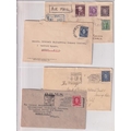 KGVI PERIOD POSTAL HISTORY. Many interesting items (45+). (1932) 1/- Lyre Bird strip of 3 + 1d + 3d to pay 3/3d Reg'd to UK (late use) Parcel Post Label with 5/- Robes + 4 x 2½d on large piece, 3/- rate by hand OHMS Cover to UK. Interesting single usages and destinations inc. Brazil, 3d NSW on Cover to Mexico, Postcard to Kangaroo Island etc.