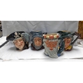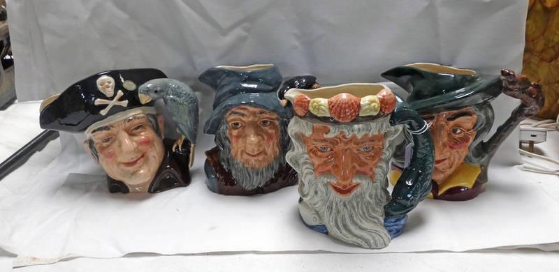 4 ROYAL DOULTON LARGE CHARACTER JUGS: LONG JOHN SILVER, PIED PIPER, RIP VAN WINKLE & NEPTUNE