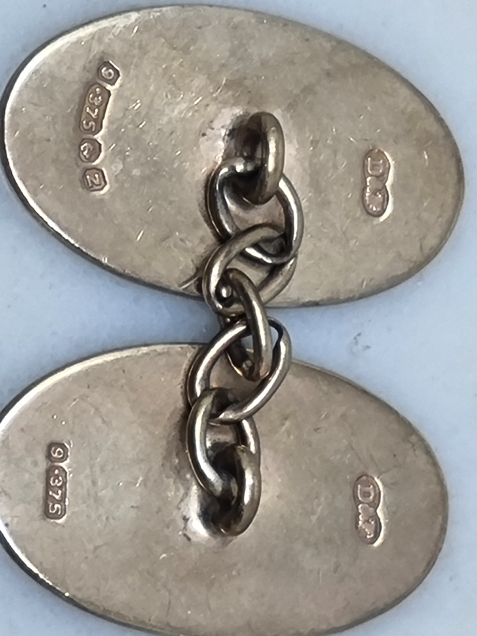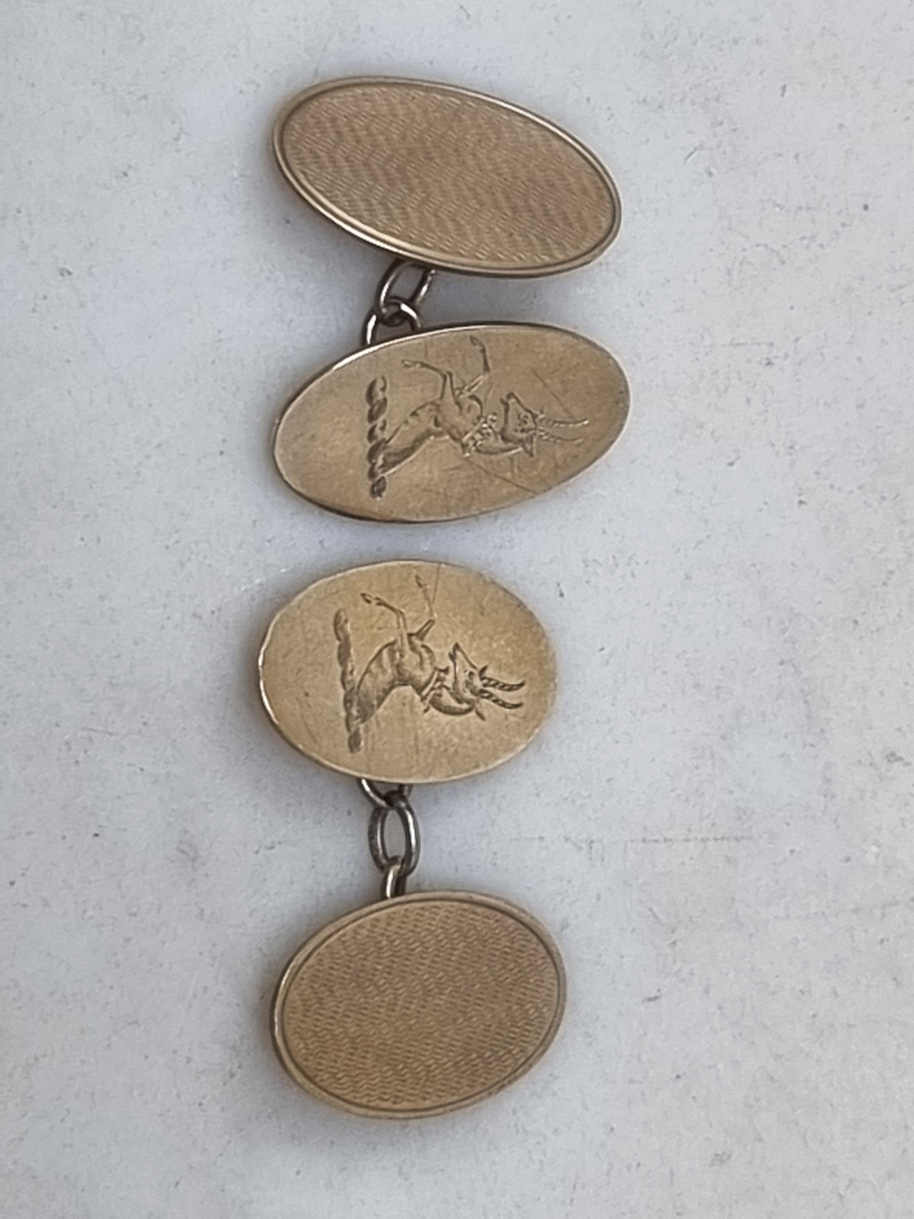 A pair of 9ct gold oval Cuff Links engraved crest, Birmingham 1949, 6.6gms