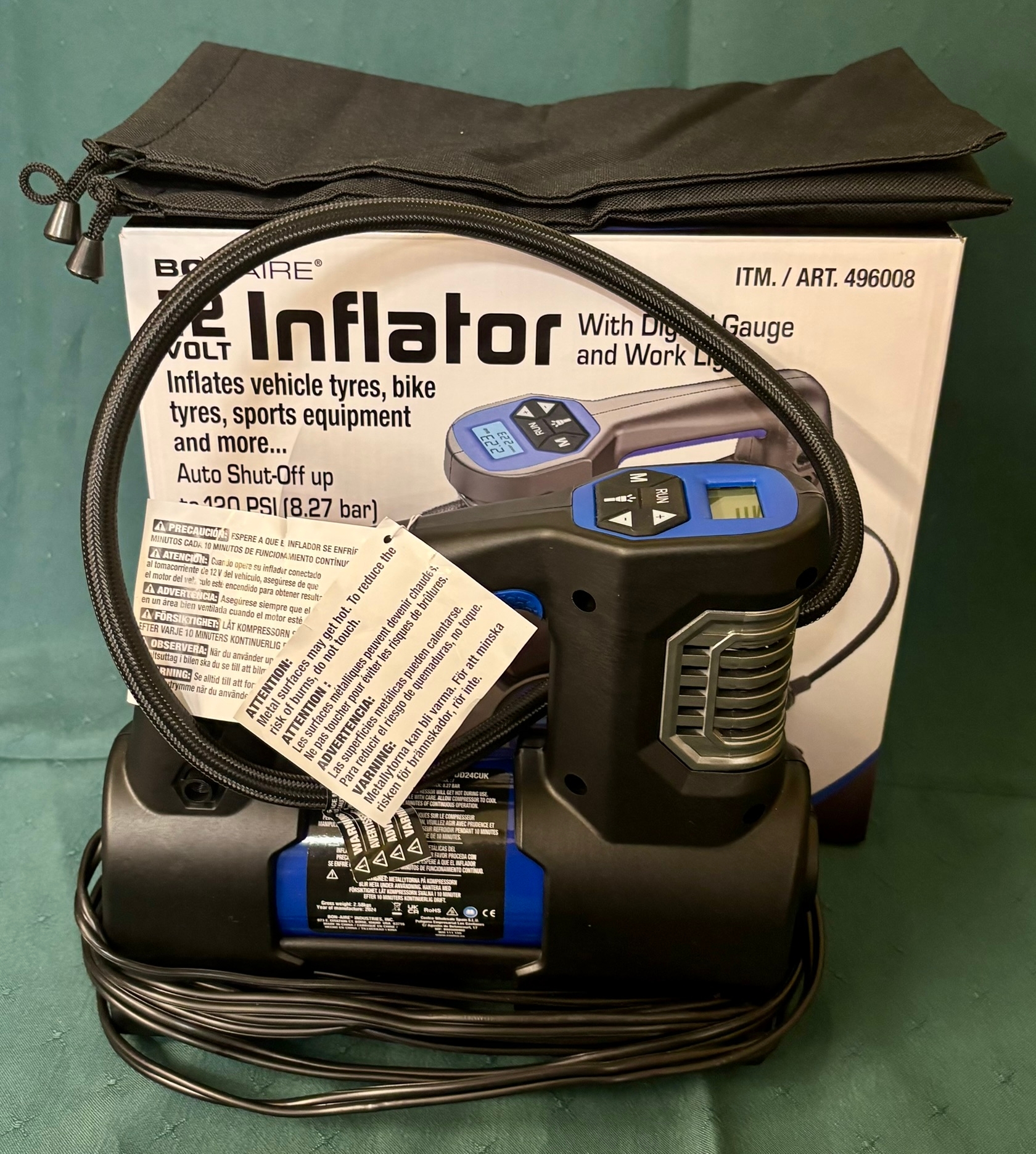 BOXED BONAIRE 12V TYRE INFLATOR WITH DIGITAL GAUGE AND WORKL...